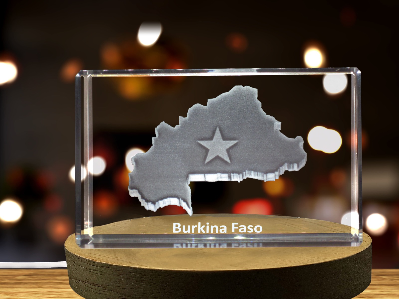 LED Base included | Burkina Faso 3D Engraved Crystal 3D Engraved Crystal