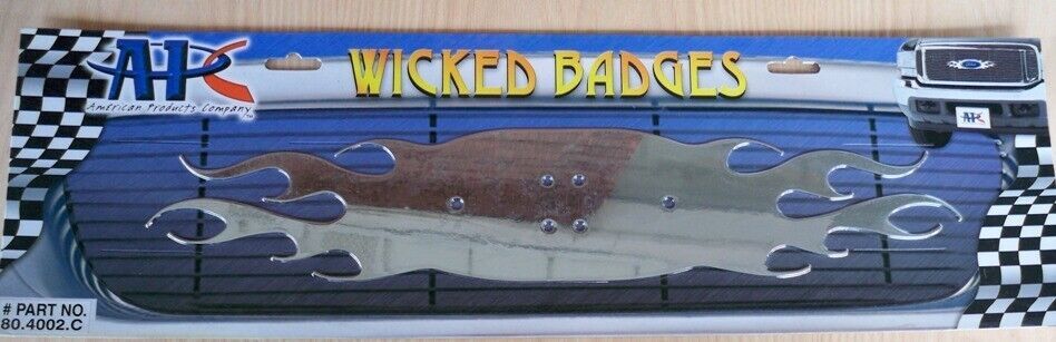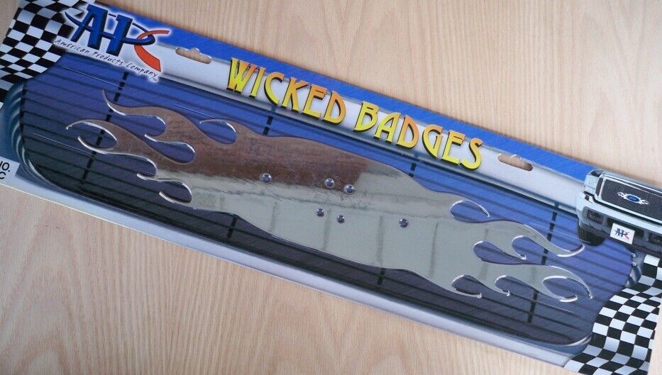 99 00 01 02 03 04 Ford F250 super duty Wicked flames front grill badge base (THE FORD EMBLEM SHOWN ON THE GALLERY PICTURE IS NOT INCLUDED). It is new in the box ready to be shipped the same day. msrp of $57. Well chromed, and nice design.