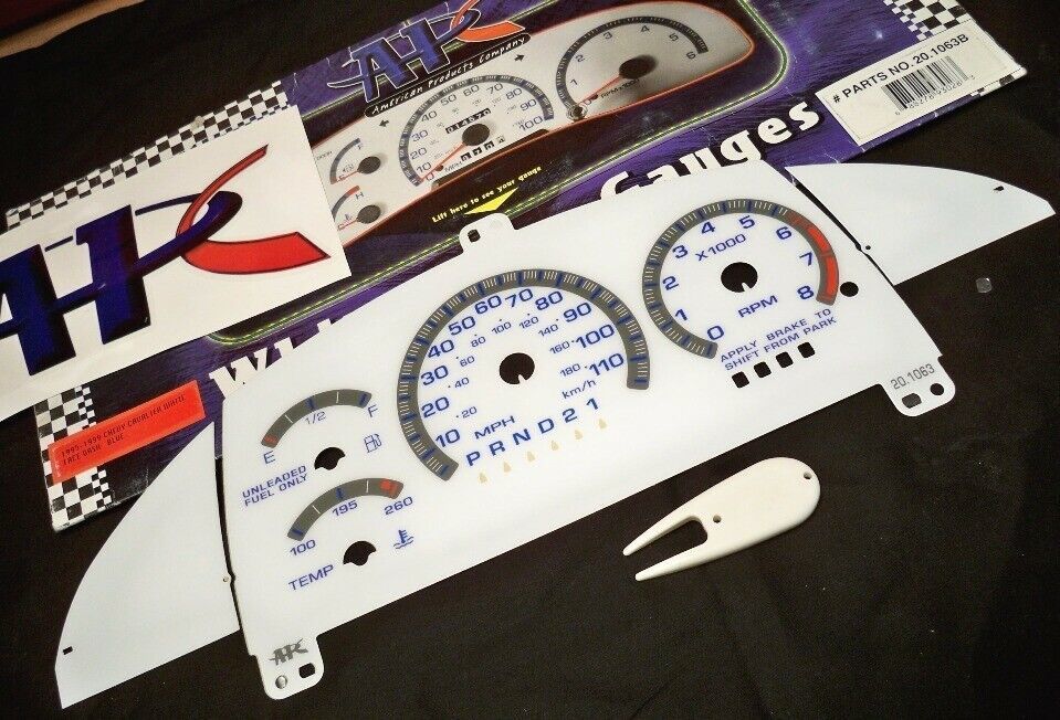 95 96 97 98 CHEVY CAVALIER AT (AUTOMATIC) WHITE FACE CLUSTER GAUGES KIT WITH BLUE NUMBERS