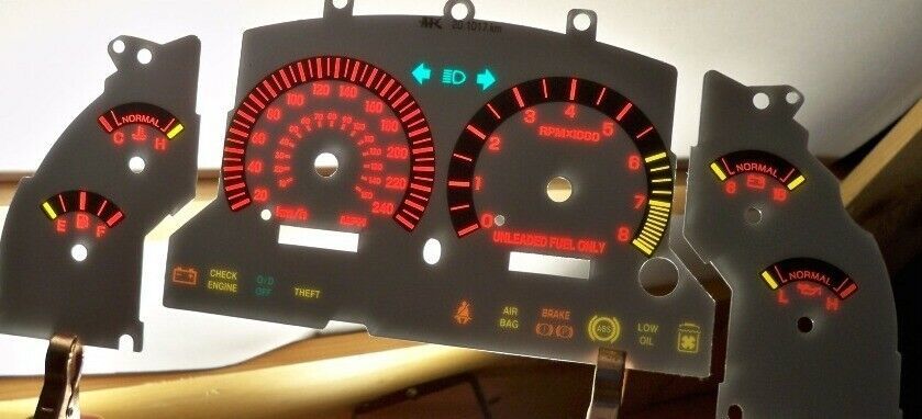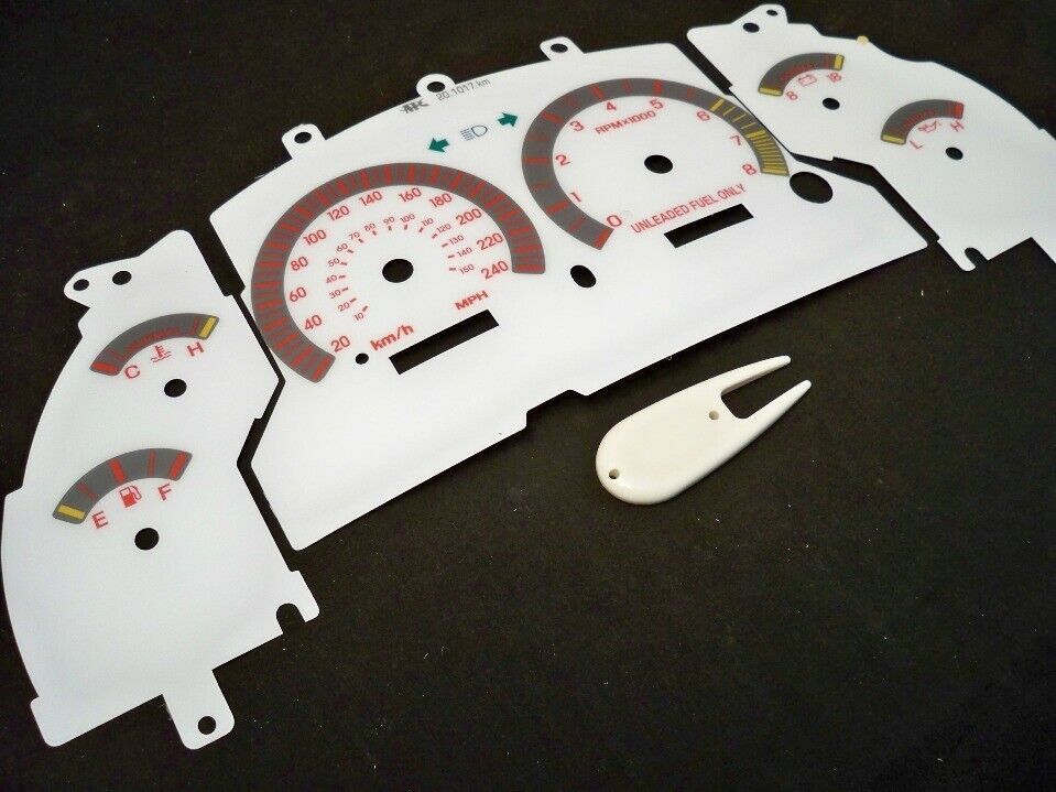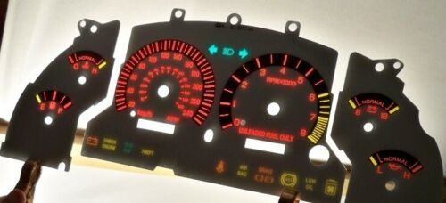 Fits 1996 1997 1998 Mustang V8 GT Kilometers White Face Glow Through Gauges Red