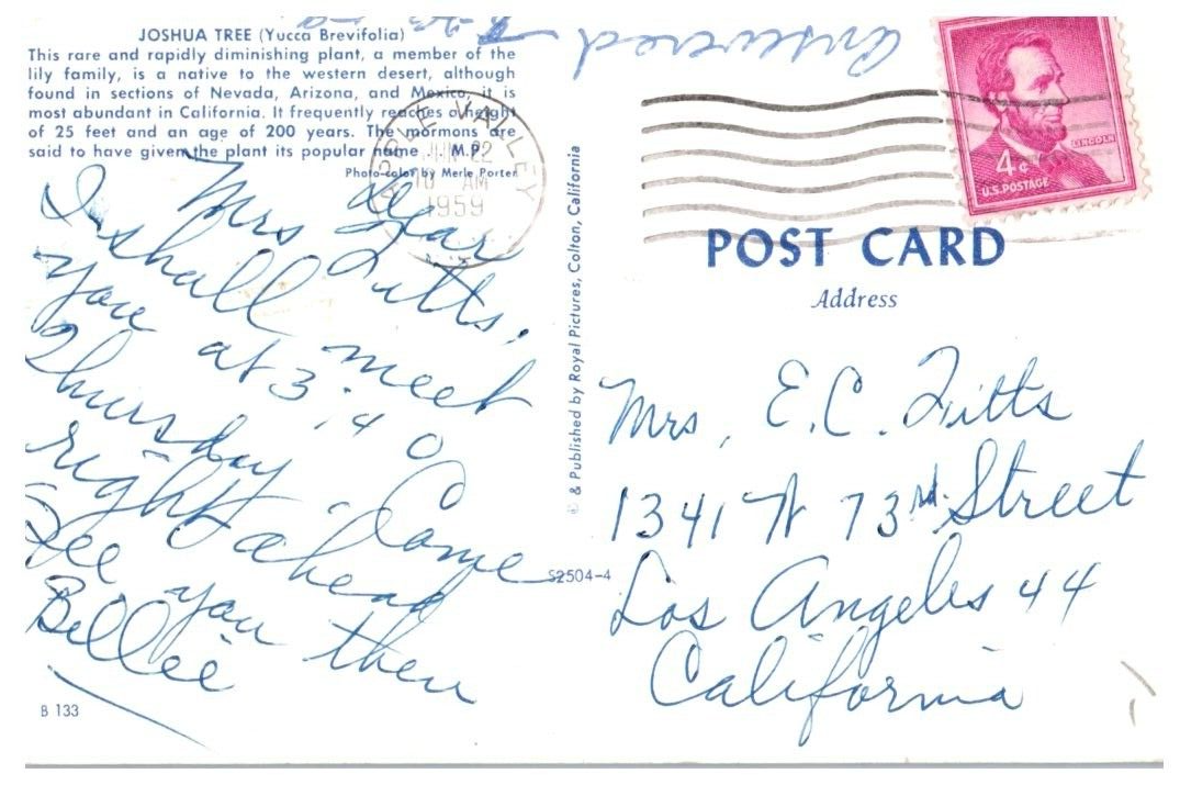 Joshua Tree Yucca Brevifolia Cactus Postcard Posted 1959