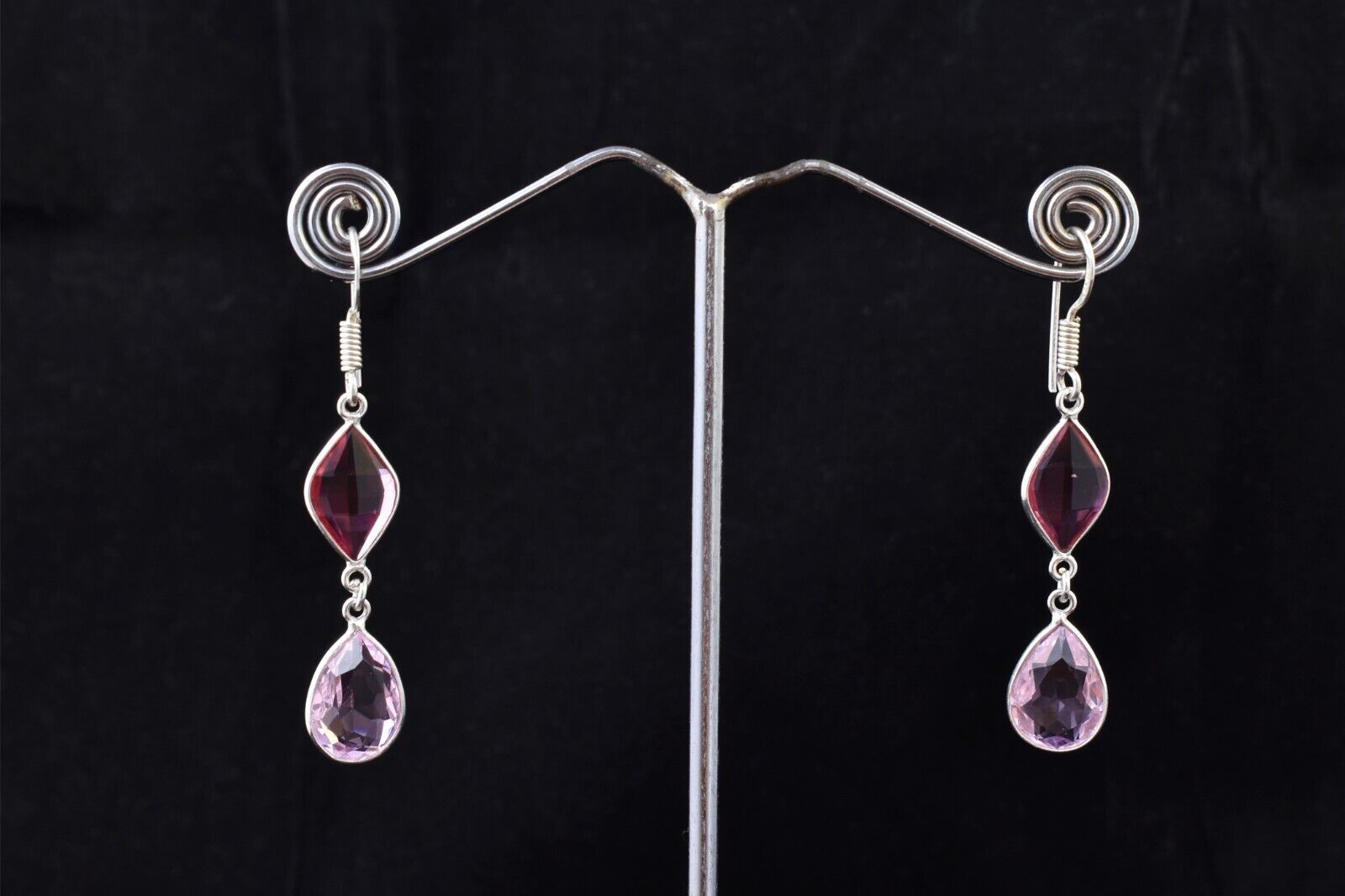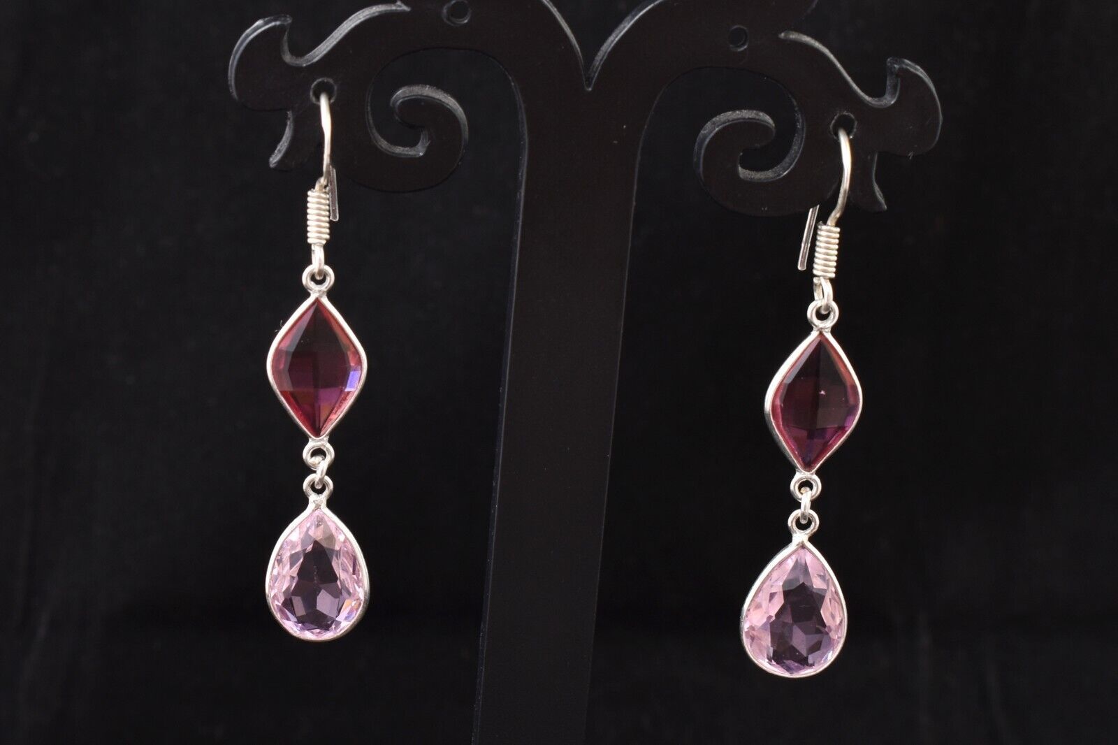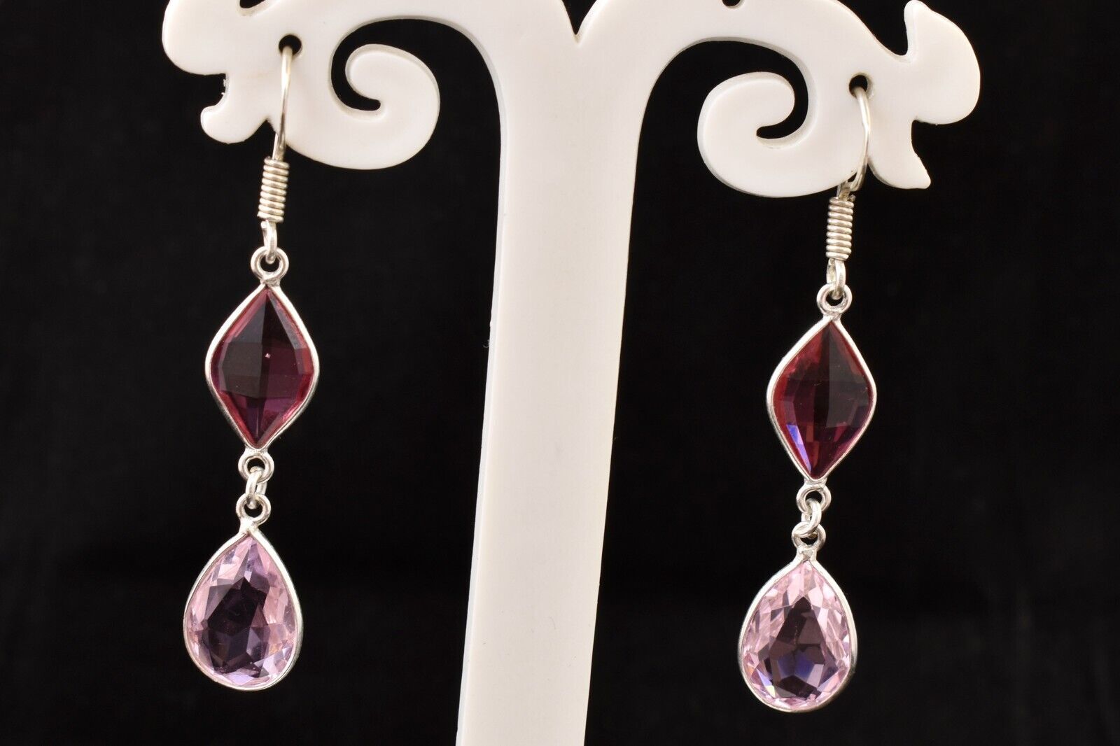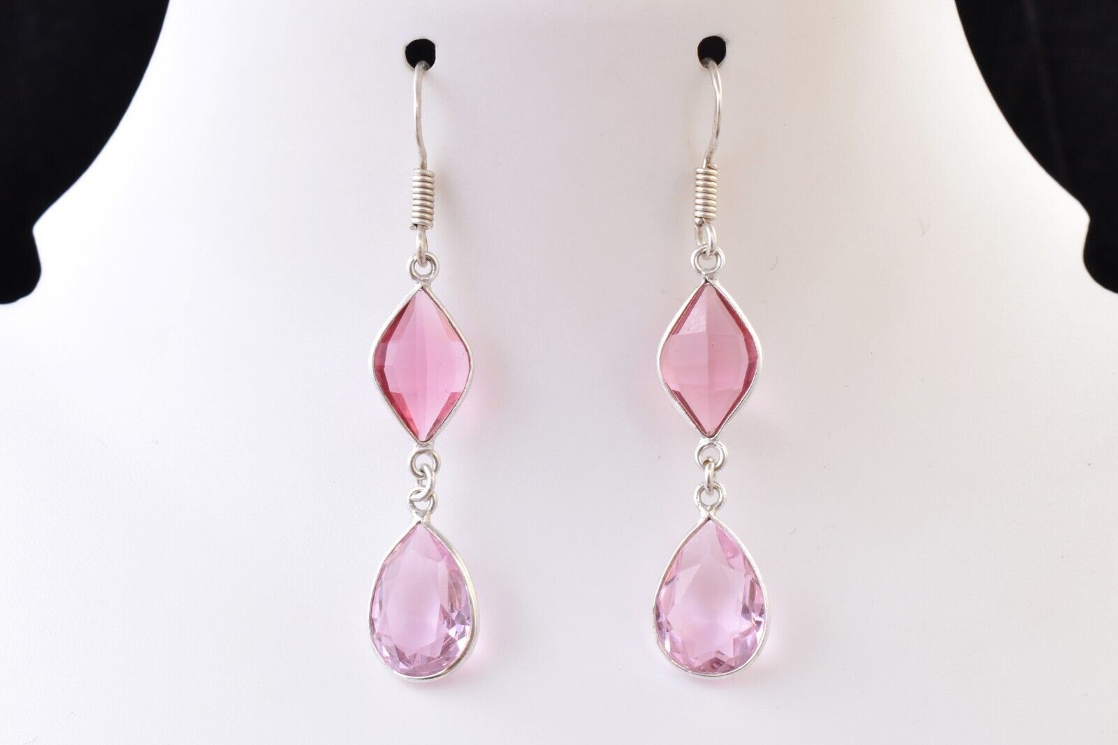 925 Sterling Silver Handmade Pink Quartz Pear Shape Women Vintage Earrings Gift