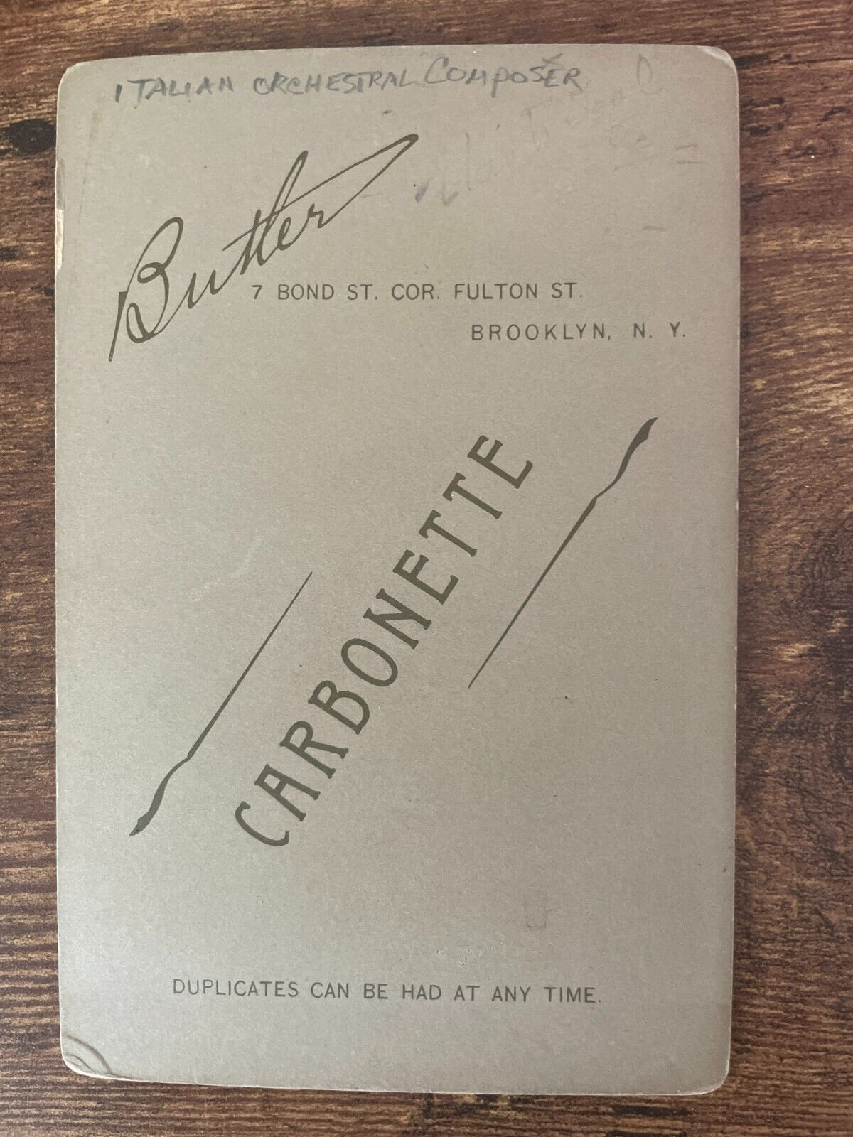 Vintage Cabinet Card. Eugenio Pirani by Butter Carbonette in Brooklyn, New York
