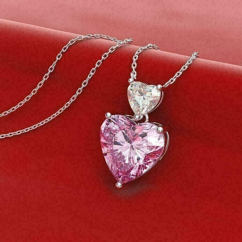 2.00Ct Heart Cut CZ Pink Sapphire Solitaire Pendant 14K White Gold Plated