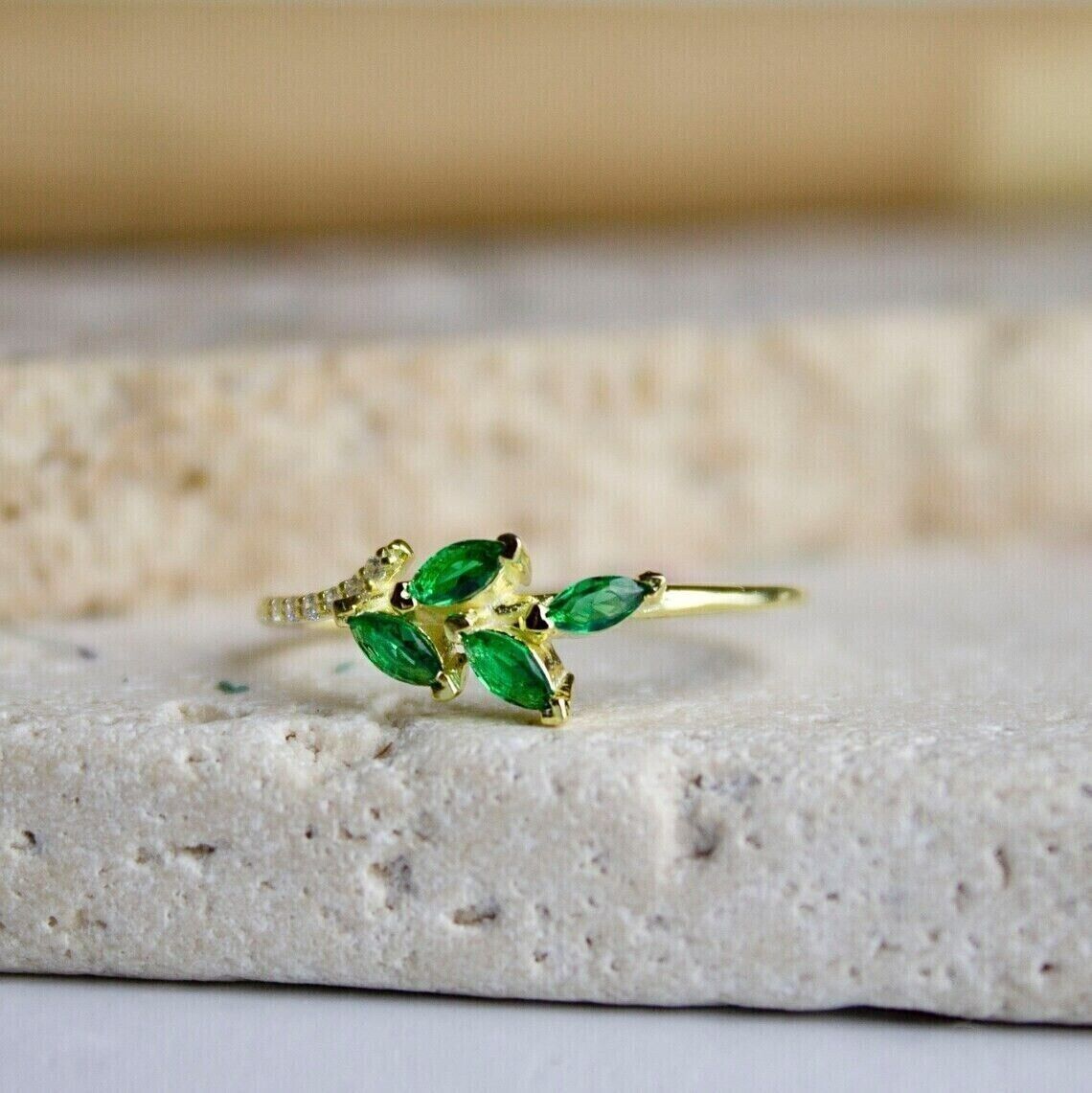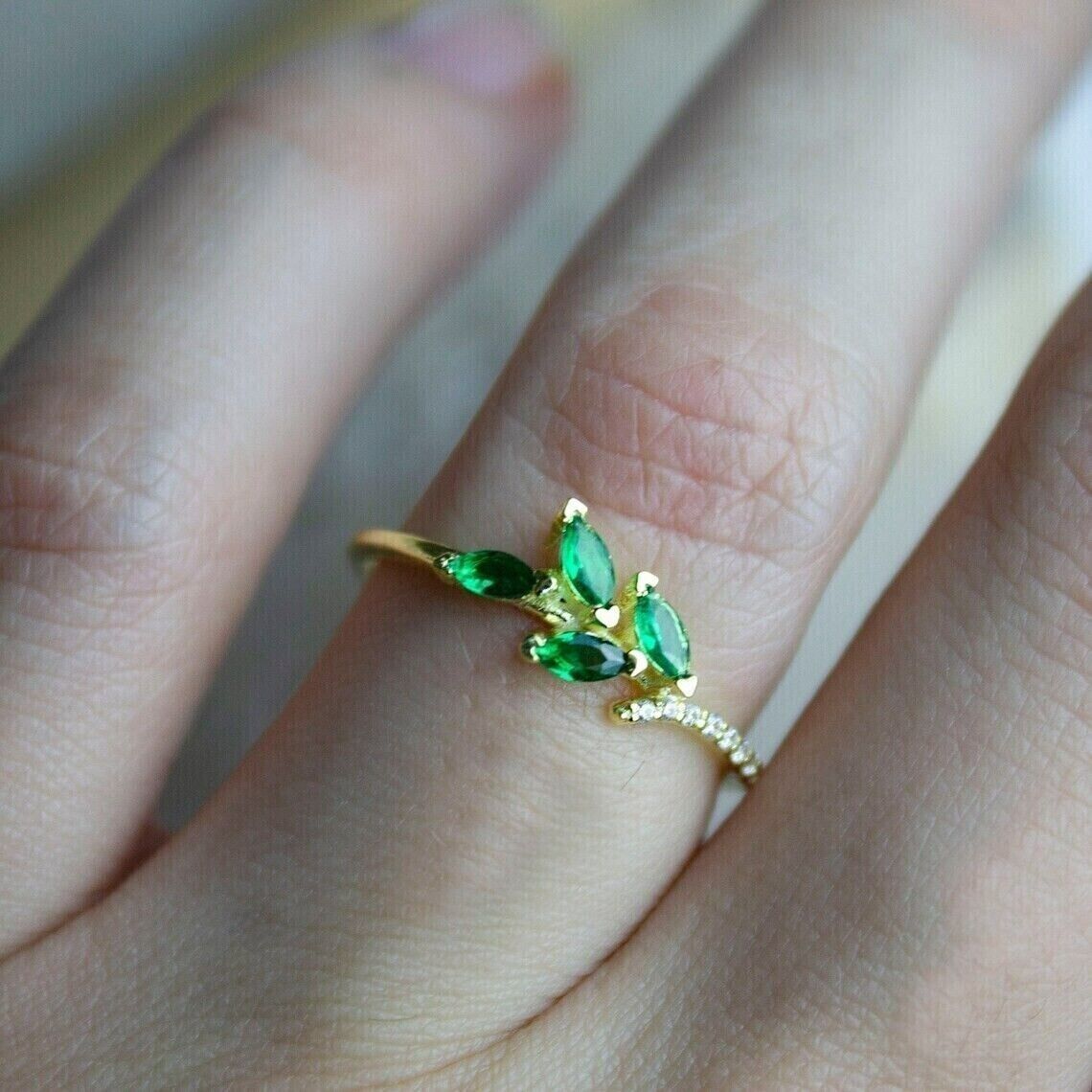 2.00Ct Marquise Cut CZ Green Emerald Engagement Ring 14K Yellow Gold Plated
