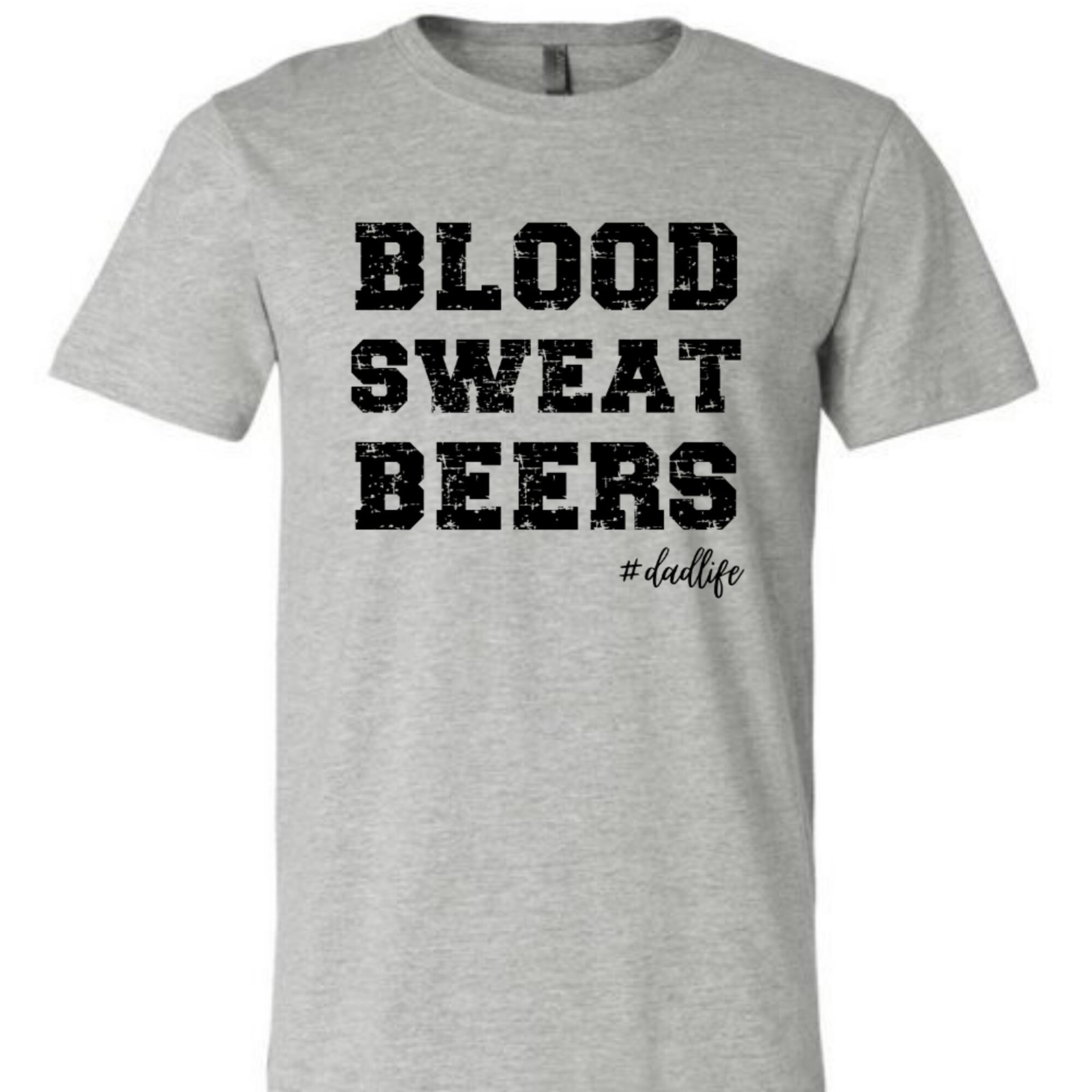 Blood Sweat Beers #dadlife graphic t-shirt would be a perfect addition to that lucky shirt collection!