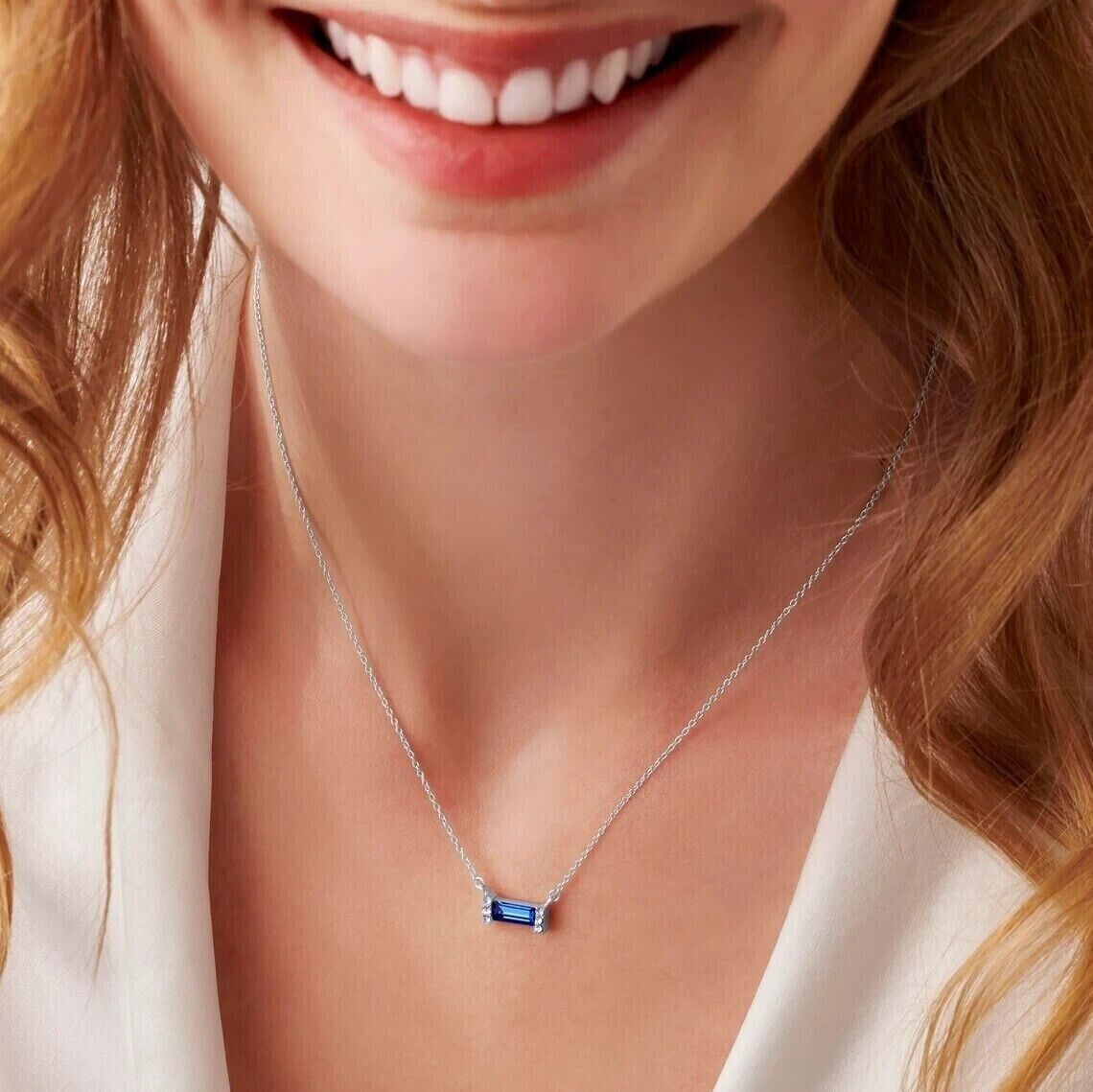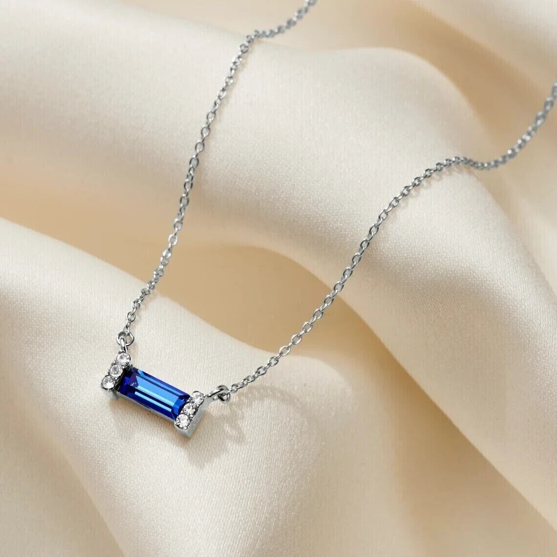 3.00Ct Emerald Cut CZ Blue Sapphire Beautiful Pendant 14K White Gold Plated