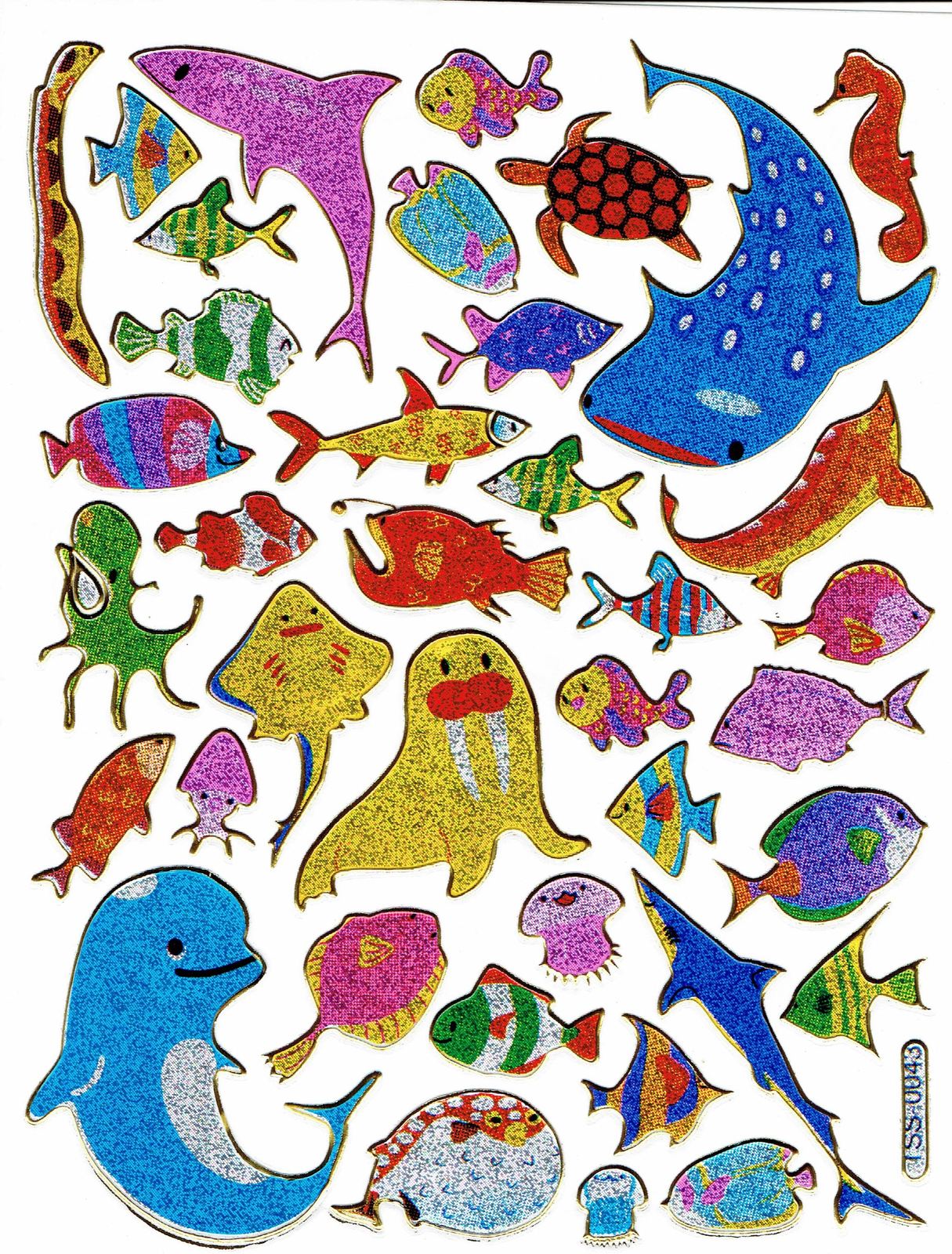 Fish Ocean School Craft Sticker Decal Size 13x10cm/5x4inch Glitter Metallic D555