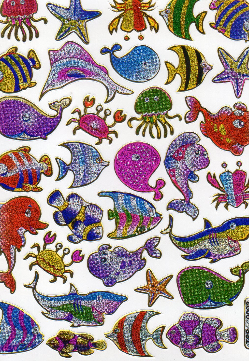 Fish Ocean School Craft Sticker Decal Size 13x10cm/5x4inch Glitter Metallic D387
