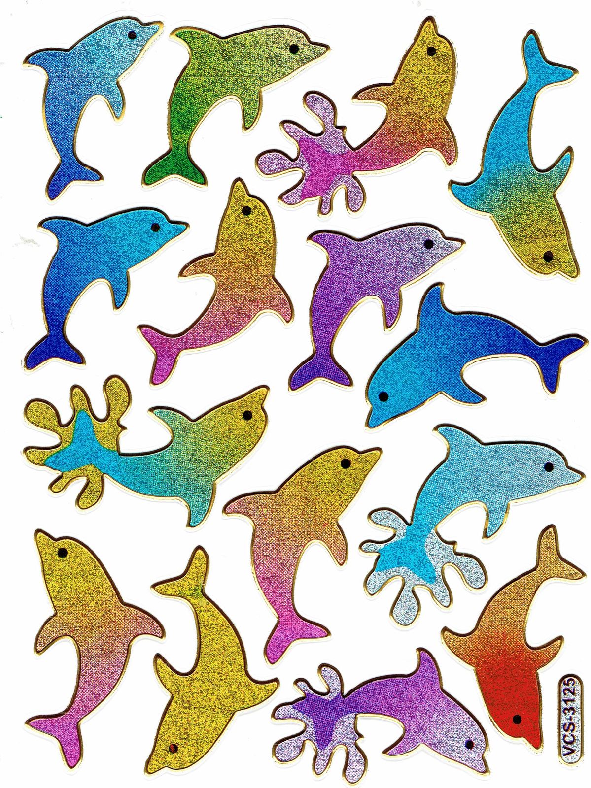 Dolphin School Craft Sticker Decal Size 13x10cm/5x4inch Glitter Metallic D194