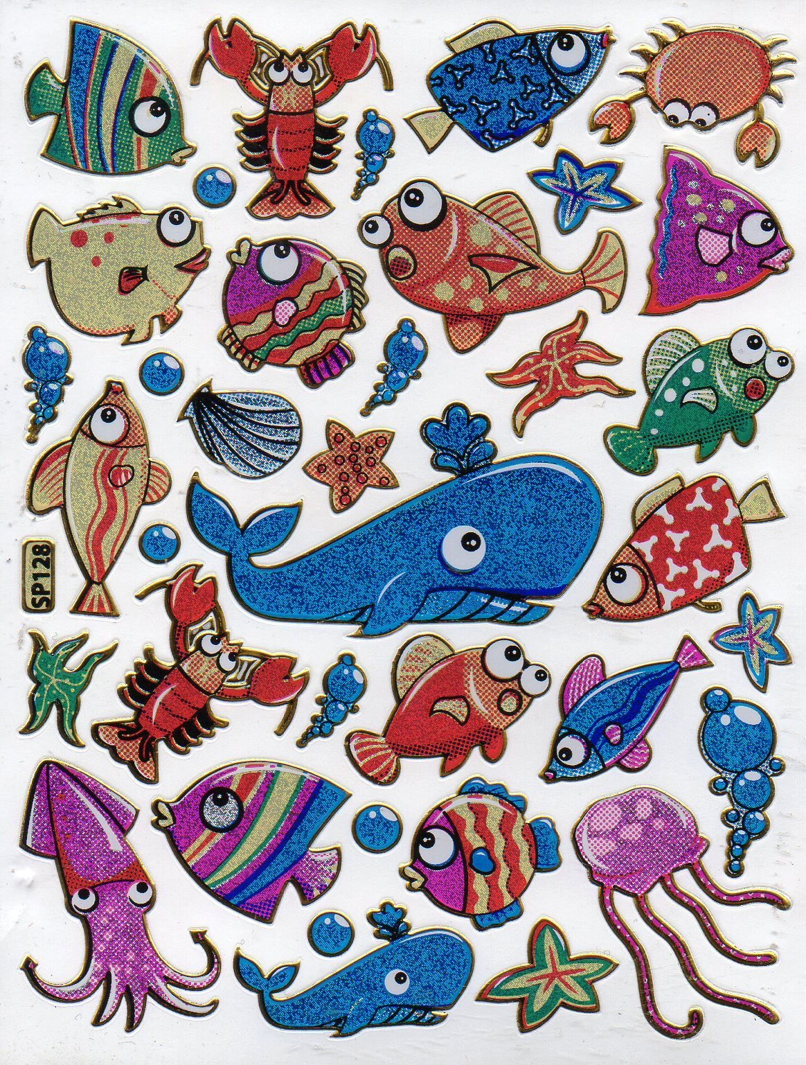 Fish ocean School Craft Sticker Decal Size 13x10cm/5x4inch Glitter Metallic D558