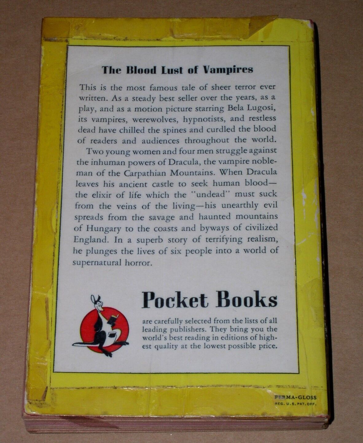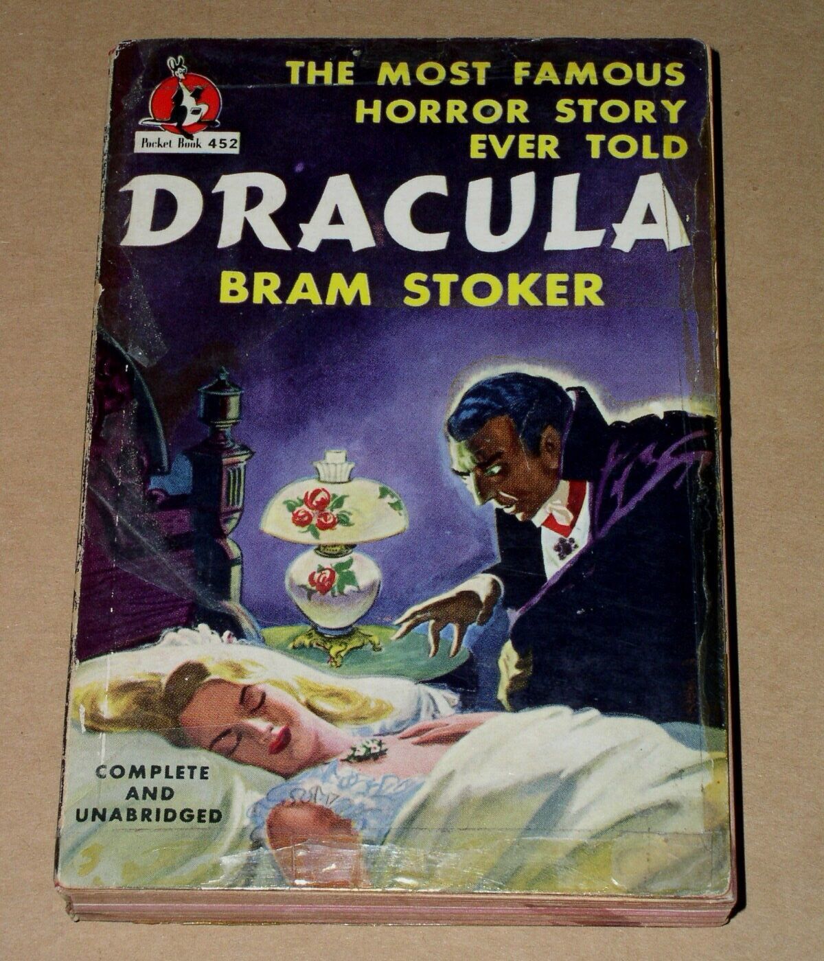 This is a vintage paperback book entitled, "Dracula" by Bram Stoker. Complete And Unabridged. This is Pocket Book #452. No date given on book but last page has 1947. I assume this is the correct date of publication.