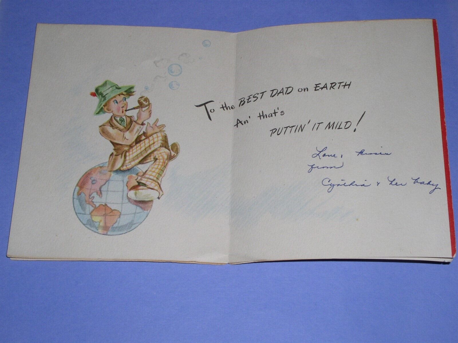 FORGET ME NOT FATHER'S DAY GREETING CARD VINTAGE 1940'S TO DAD SCRAPBOOKING