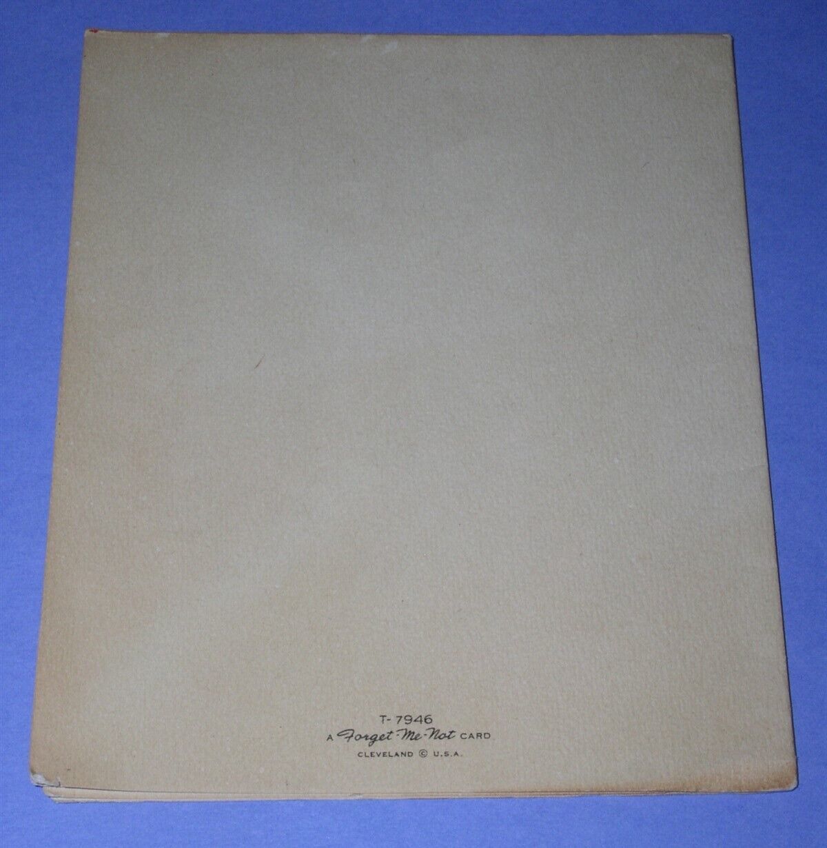 Condition is VG++ (very good ++). Front picture is as depicted in photo. Inside personal signature can most likely be camouflaged with creative embellishments, or cut altogether. Front/inside pic/sentiment can be cut and pasted into your scrapbook for that special "vintage look", or nicely matted and framed.