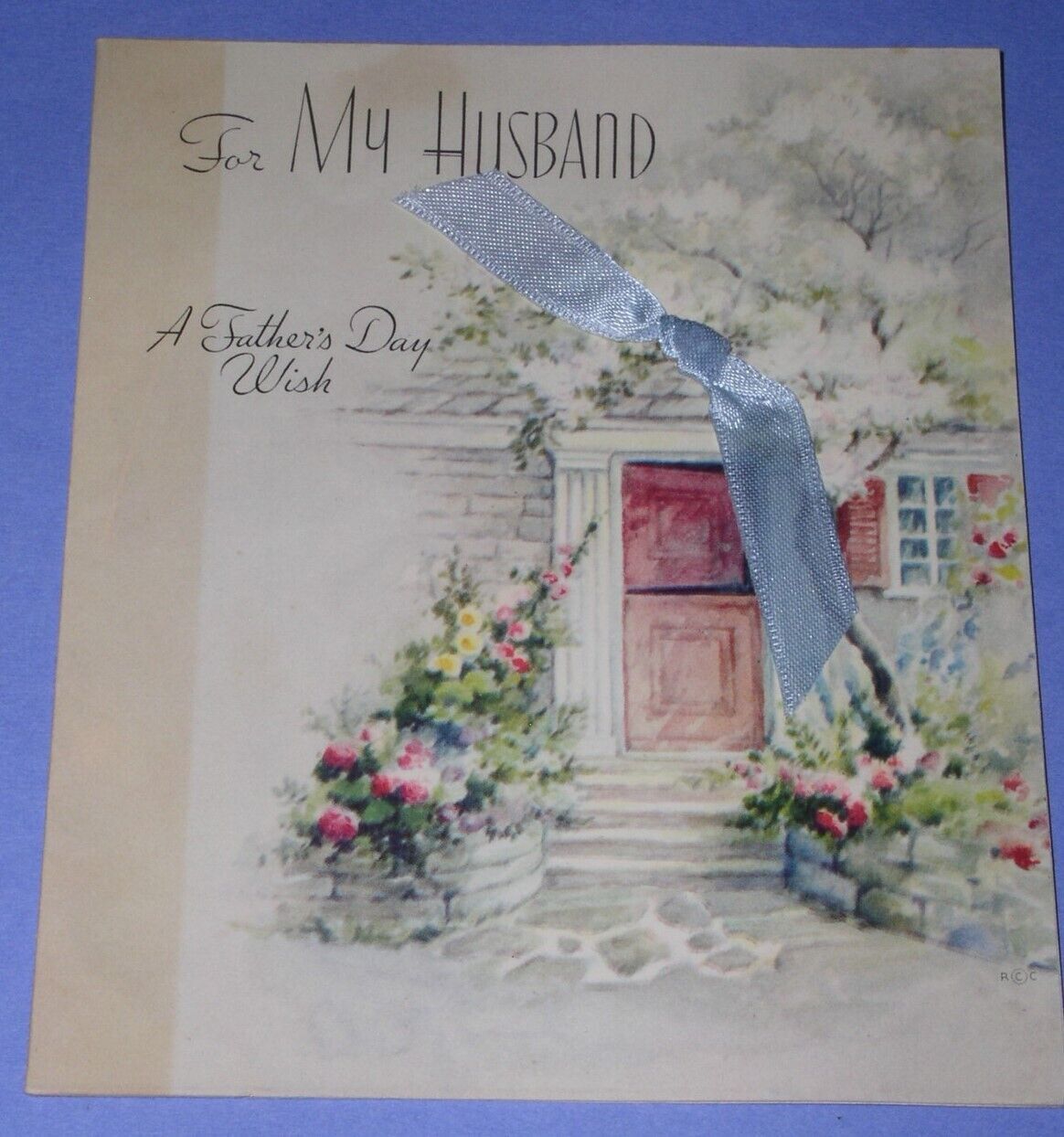 RUST CRAFT FATHER'S DAY GREETING CARD VINTAGE 1947 HUSBAND RIBBON BOW SCRAPBOOK