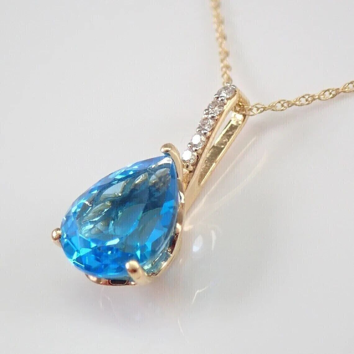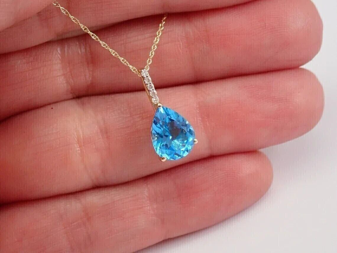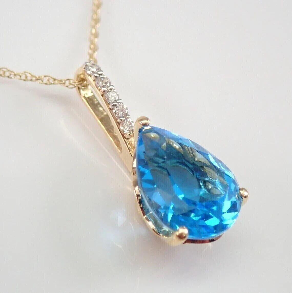 2Ct Pear Simulated London Blue Topaz Solitaire Pendant 14K Yellow Gold Plated