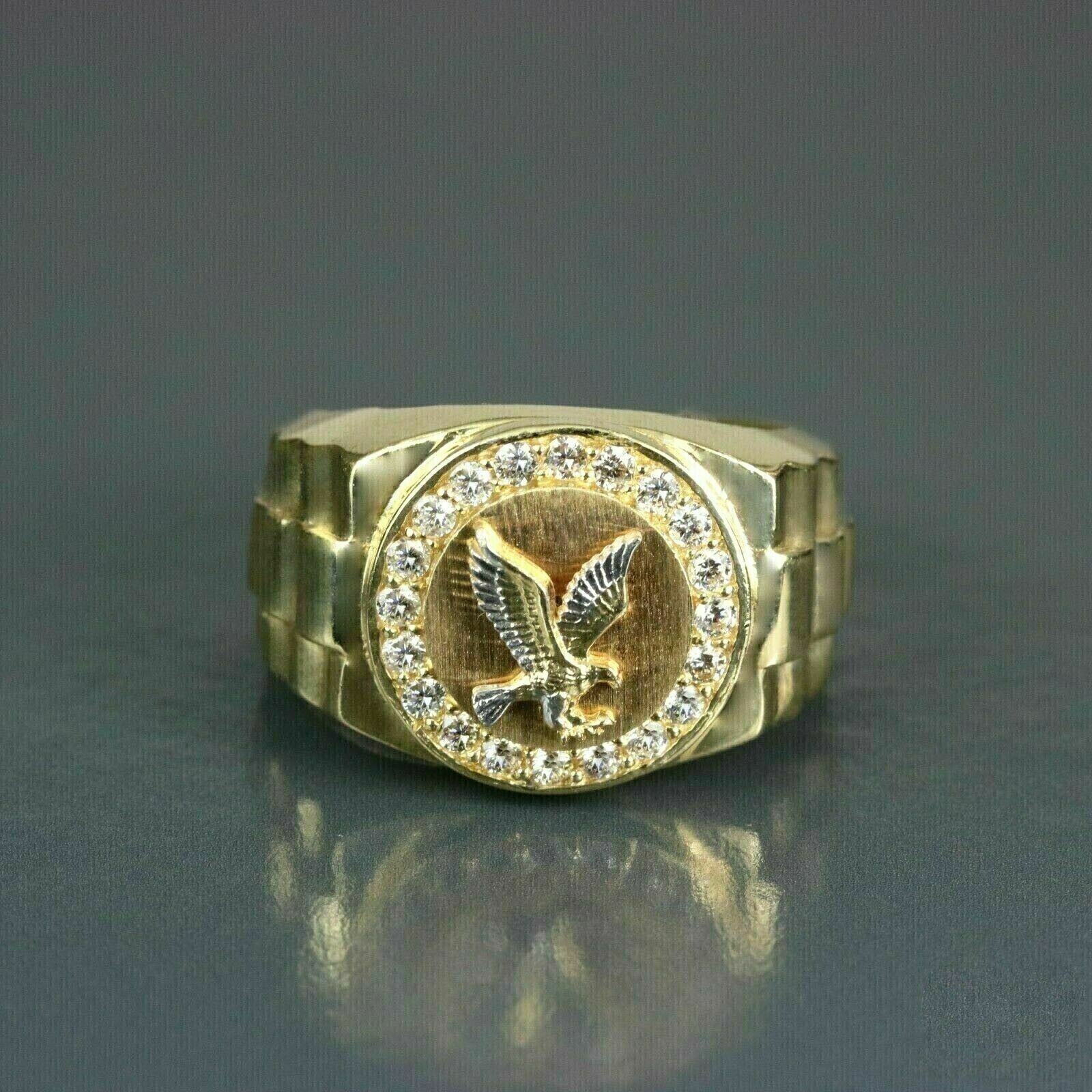 2Ct Round Cut Moissanite Flying Eagle Men's Ring 14k Yellow Gold Finish