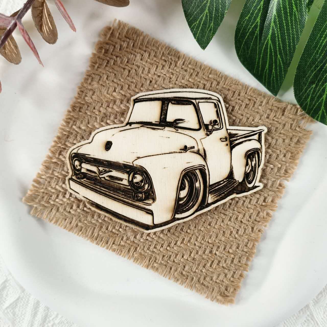 Classic American Pickup truck F-100 Wood Fridge Magnet