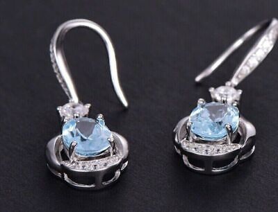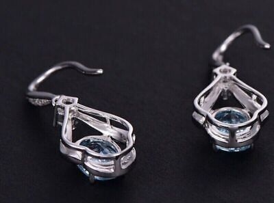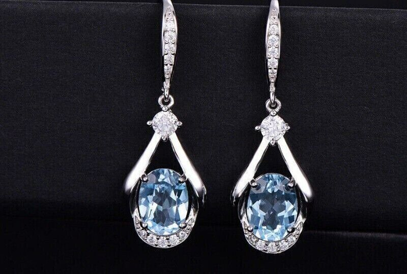 Boucles d'oreilles goutte et pendantes topaze bleue coupe ovale 4 carats...