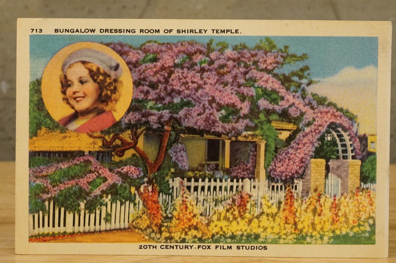 Vintage Linen Postcard Souvenir Shirley Temple Bingalow Dressing Room Studio 20th Century Fox. Smoke and pet free environment.