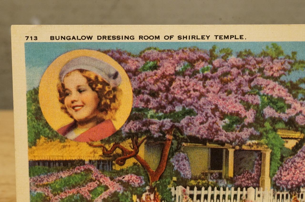 Vintage Linen Postcard Souvenir Shirley Temple Bingalow Dressing Room Studio