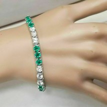 Bracelet tennis émeraude CZ coupe ronde 17,50 ct plaqué or blanc 14 carats...