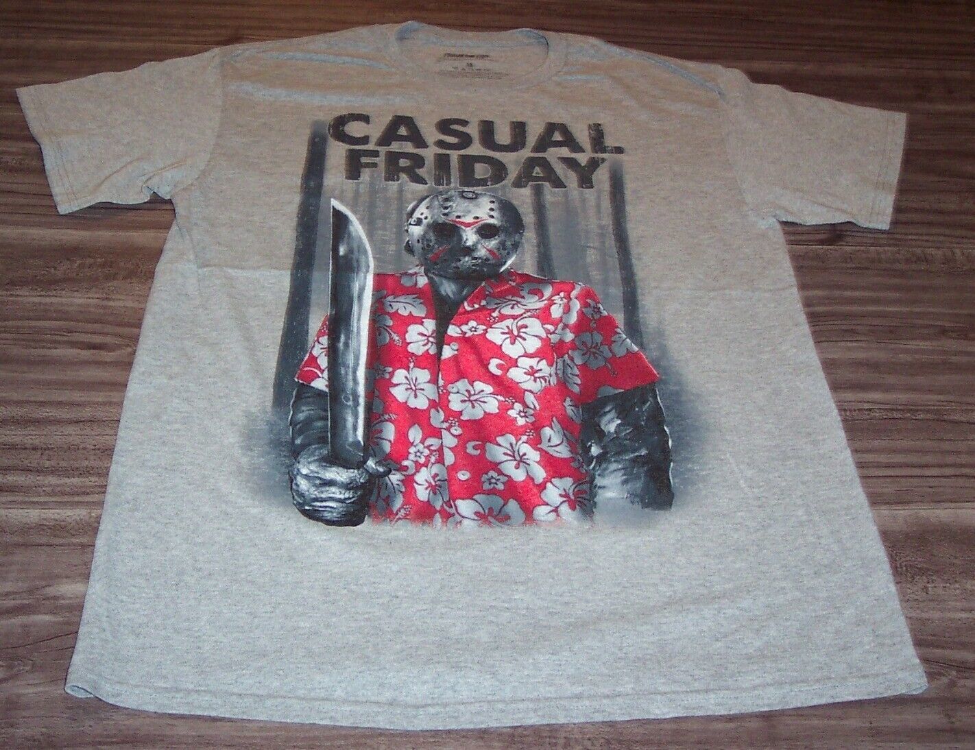 This is a FUNNY Friday The 13th JASON Casual Friday T-shirt. It is a size MEDIUM and it is NEW. It is 19 1/2 inches from armpit to armpit and 30 inches in length. Combine auctions to save on shipping. AD