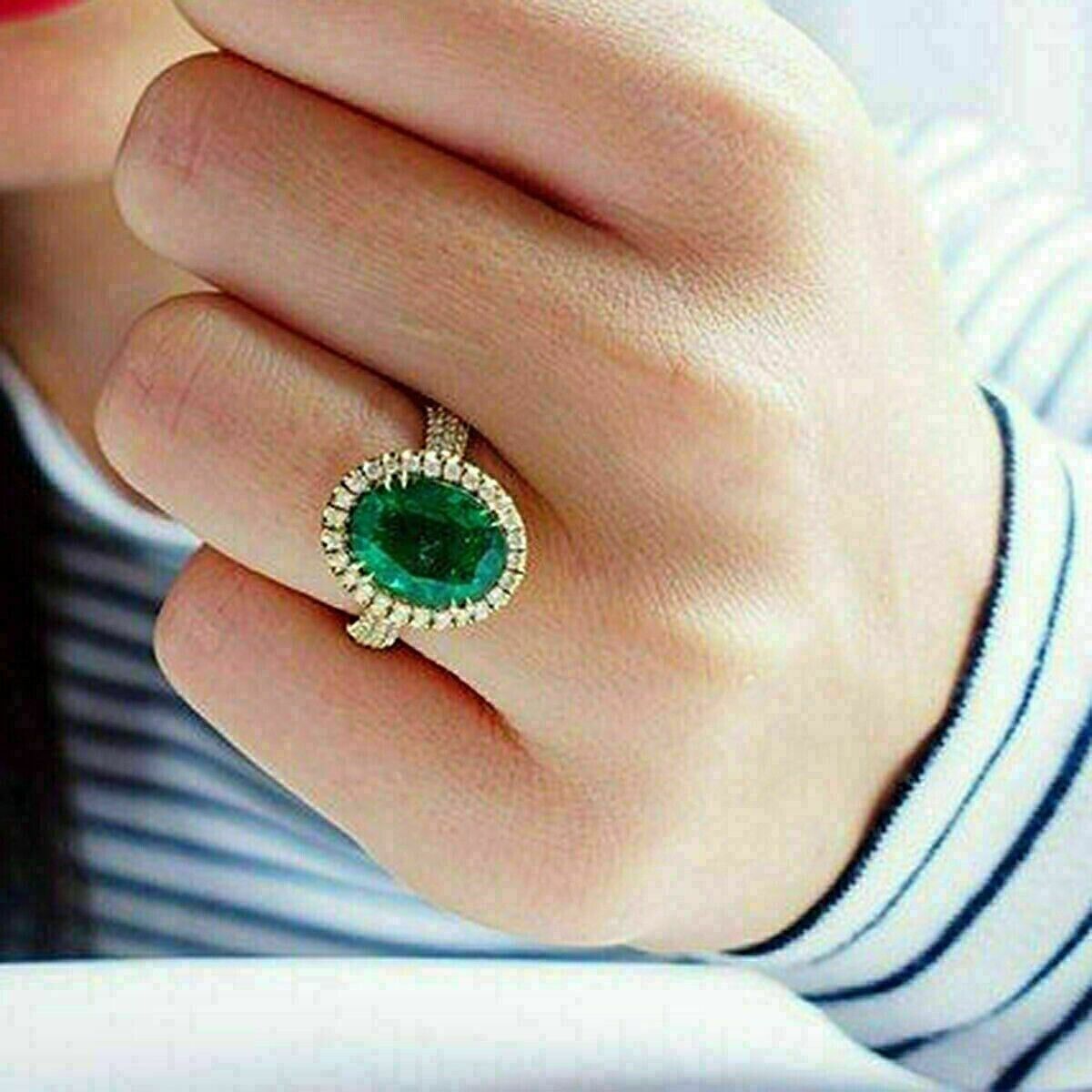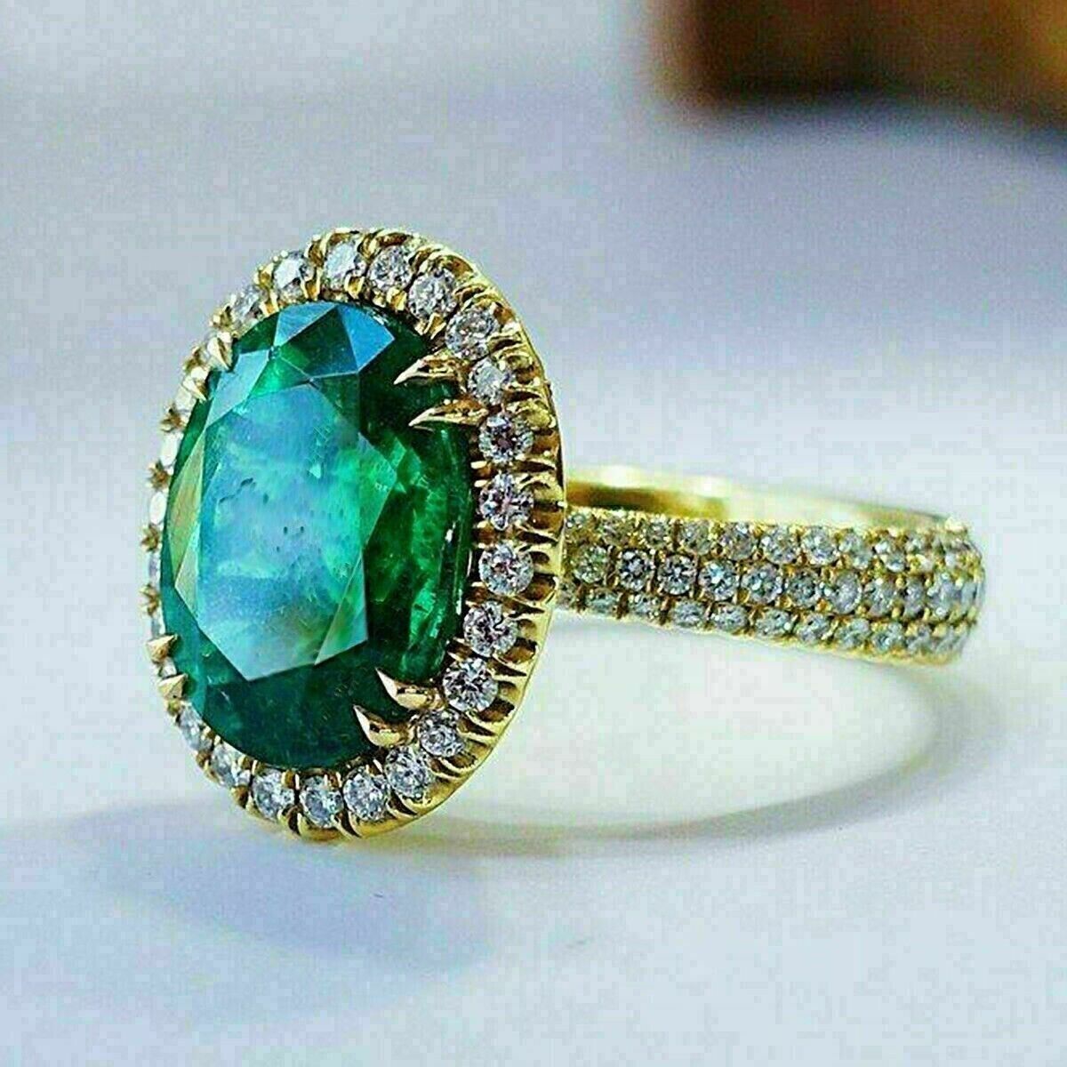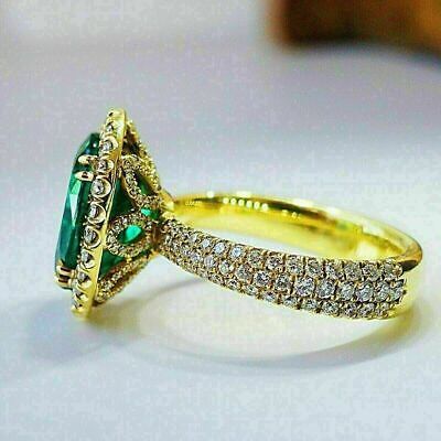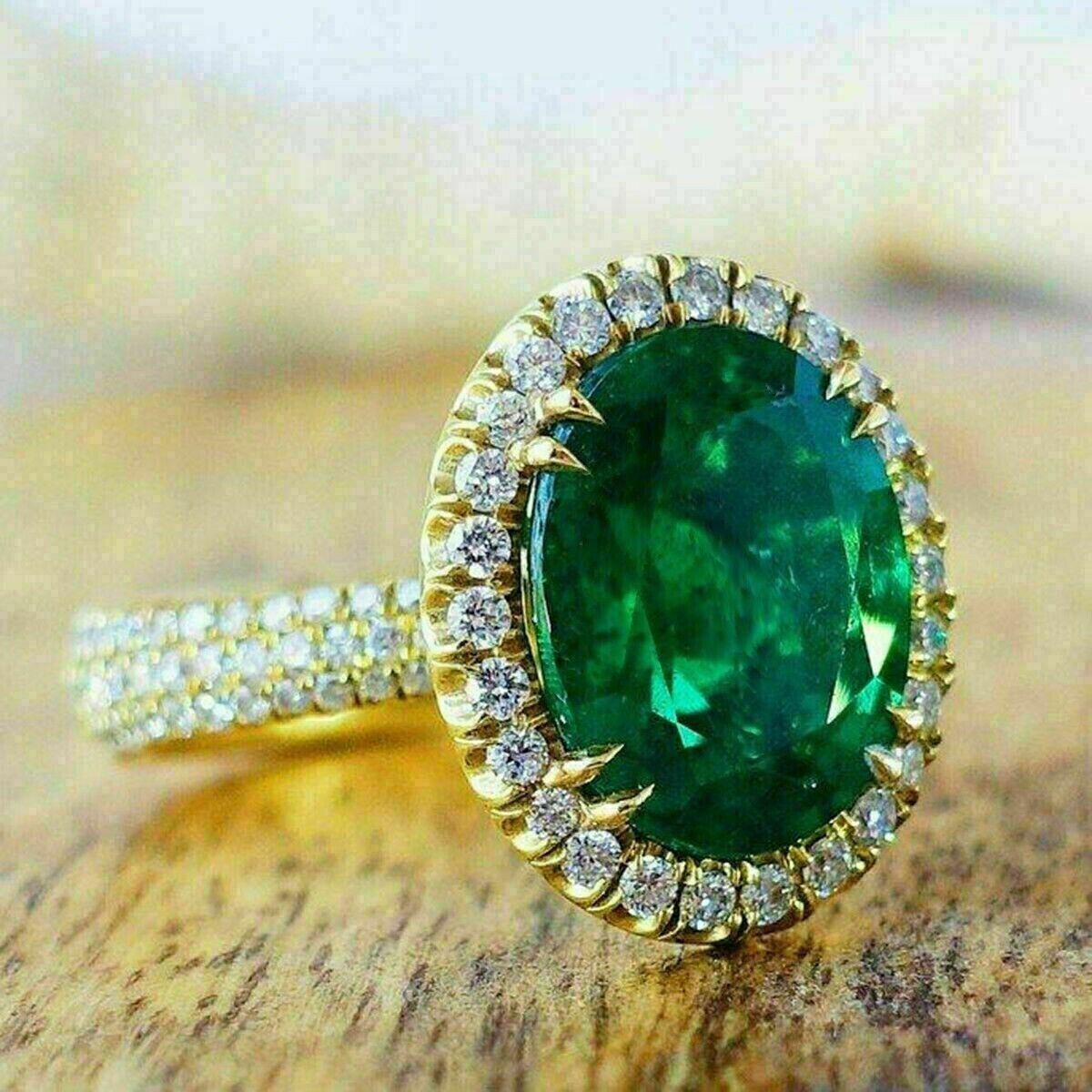 Bague d'anniversaire de mariage émeraude CZ taille ovale 3 carats plaqué or...