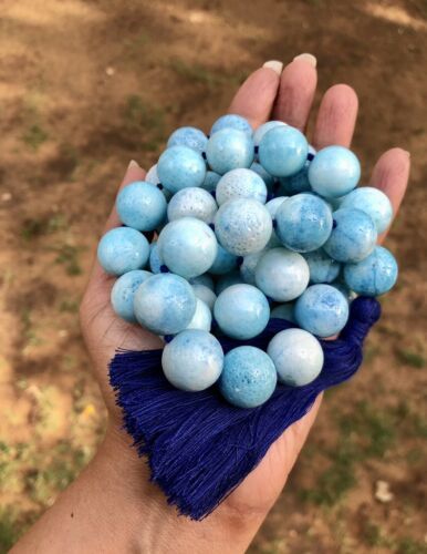 16 mm Rnd 54+1 Beads Created Blue Coral Jaap Rosary, Japa Mala Energized