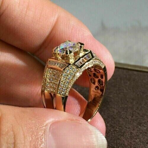 2Ct Rond CZ Moissanite Mariage Bague Homme Plaqué Or Jaune 14K - Argent 925
