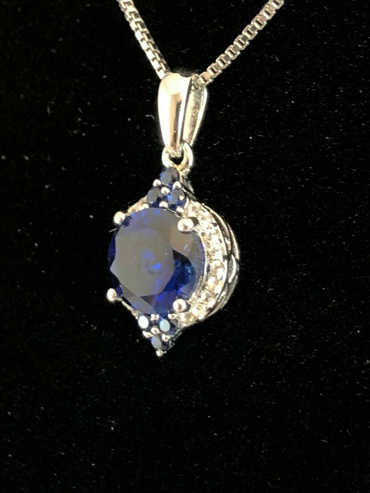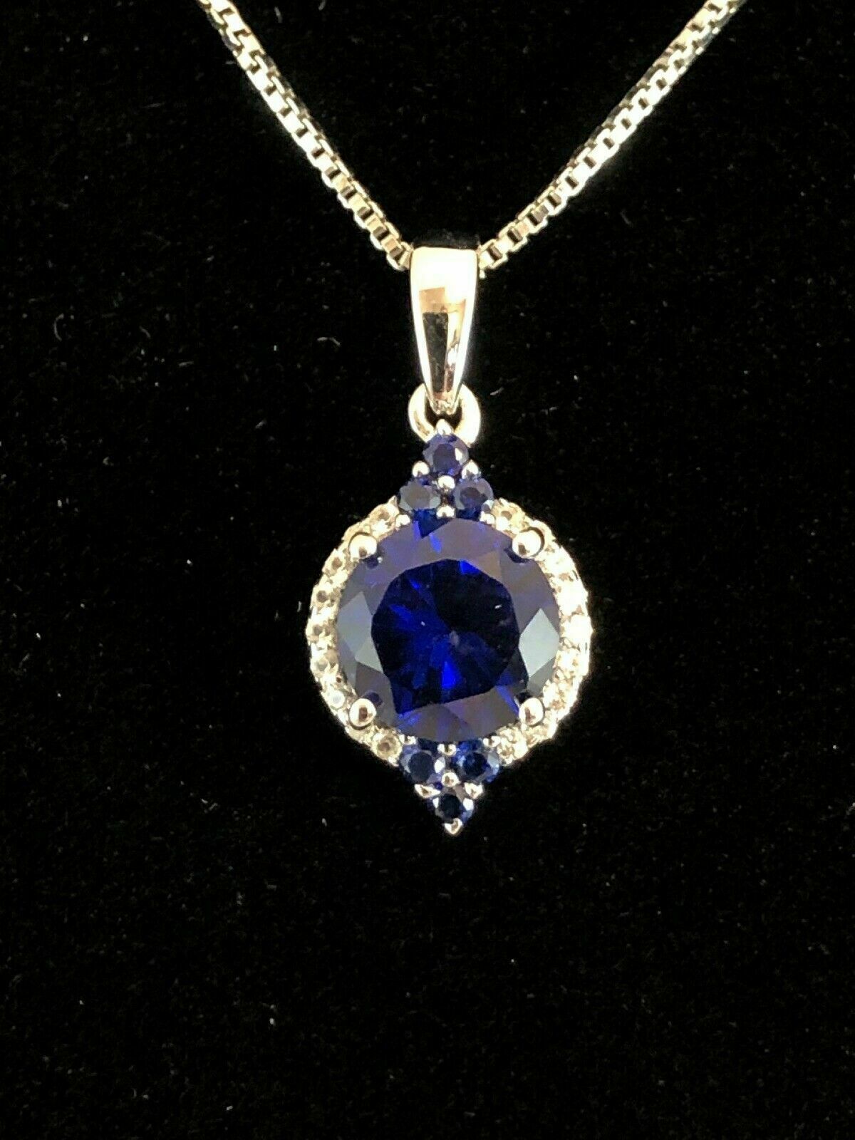Ciondolo aureola con zaffiro blu rotondo da 2,50 carati, argento 925...