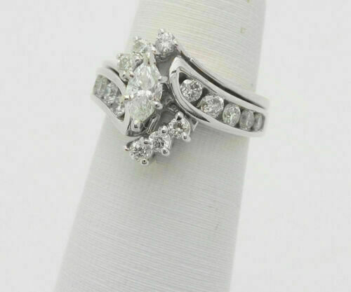 Anillo de bodas de compromiso con circonita cúbica de corte marquesa de...