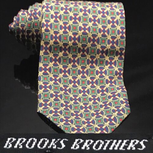 BROOKS BROTHERS Royal Blue Green Yellow Chain Locks Silk Tie