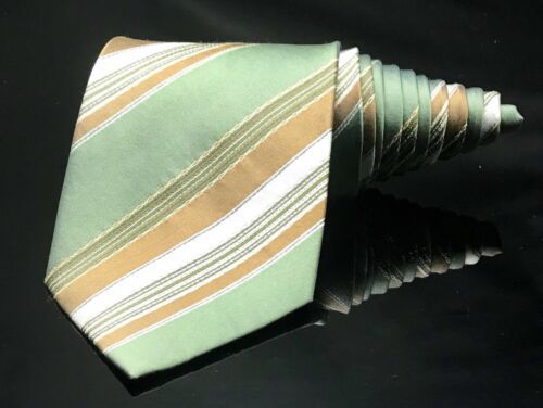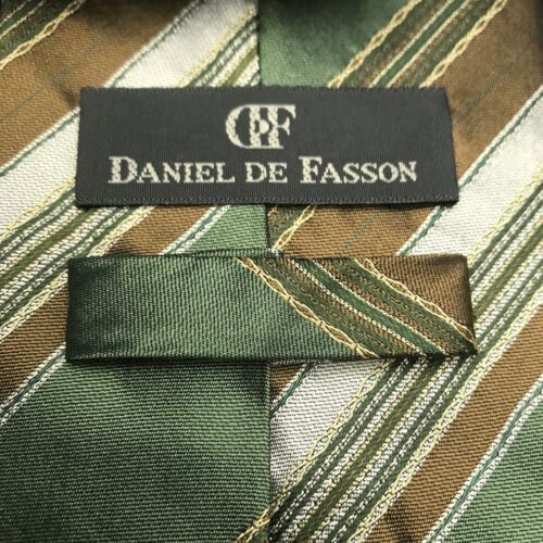 DANIEL DE FASSON Hand Made Silk Stripped Green Brown 80’s Tie Men's Necktie
