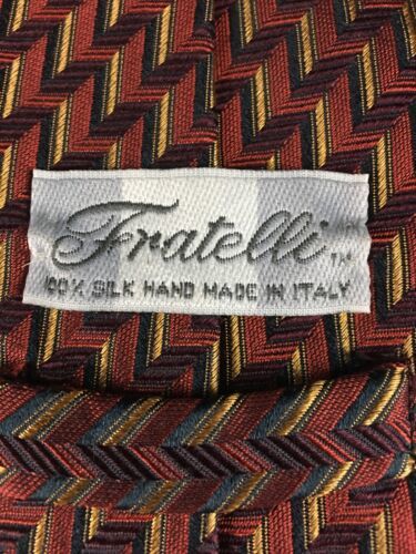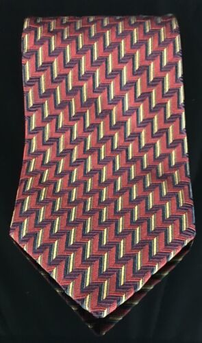 Beautiful Fratelli Multi-Colored Red Yellow Blue Zigzag Tie 100% Silk Italy