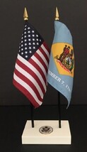 USA & Connecticut 4"x6" Office Desk Flag Executive Set; 2 Flags, Base w/USA Seal added to cart.