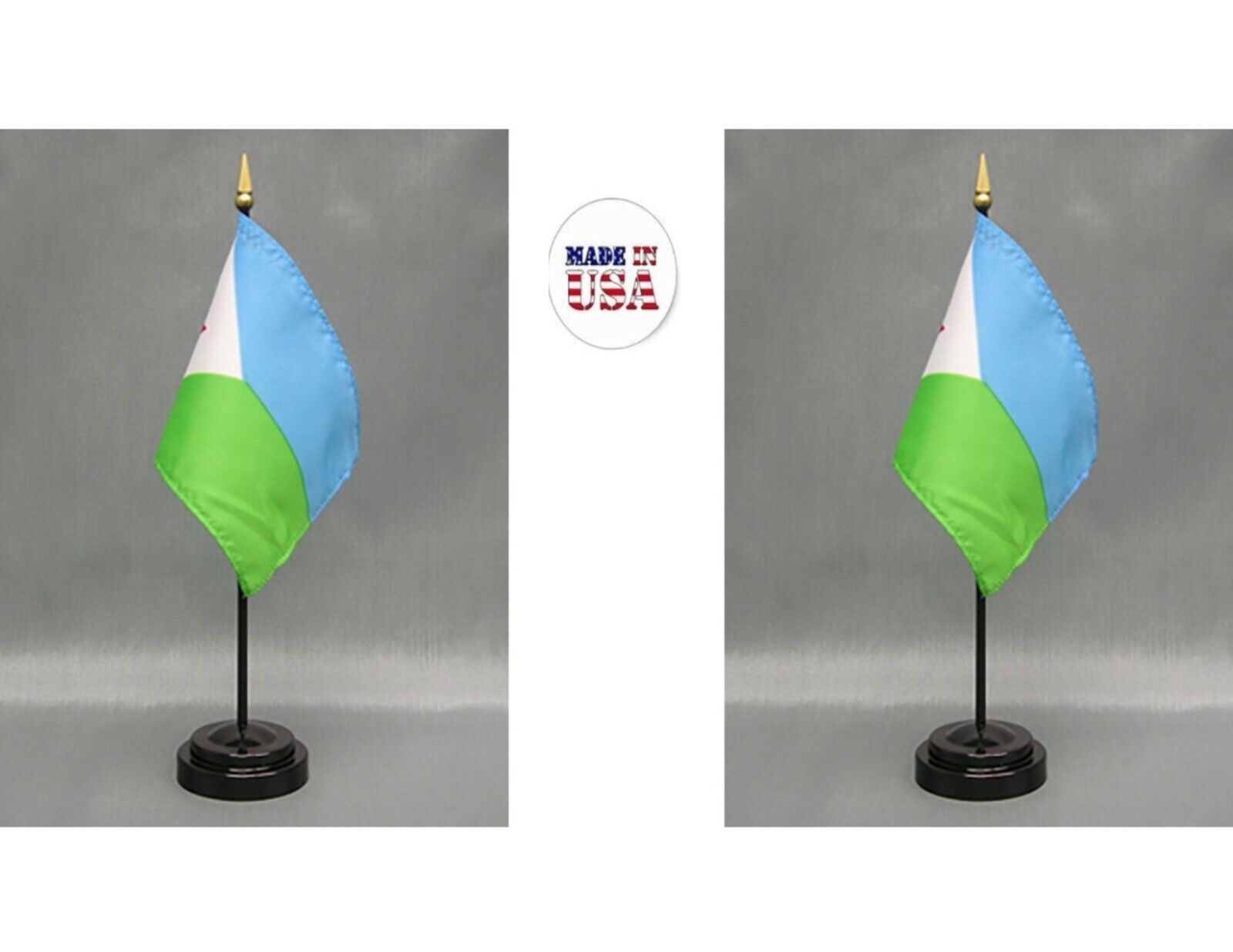 Made in The USA--2 Djibouti Rayon 4"x6" Desk Flags with two black bases