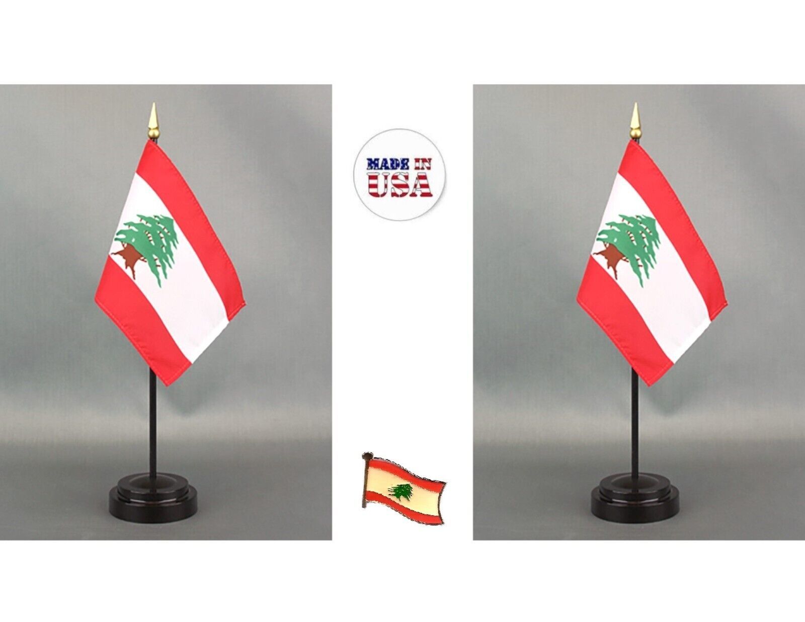 Made in The USA--2 Lebanon Rayon 4"x6" Desk Flags with two black bases