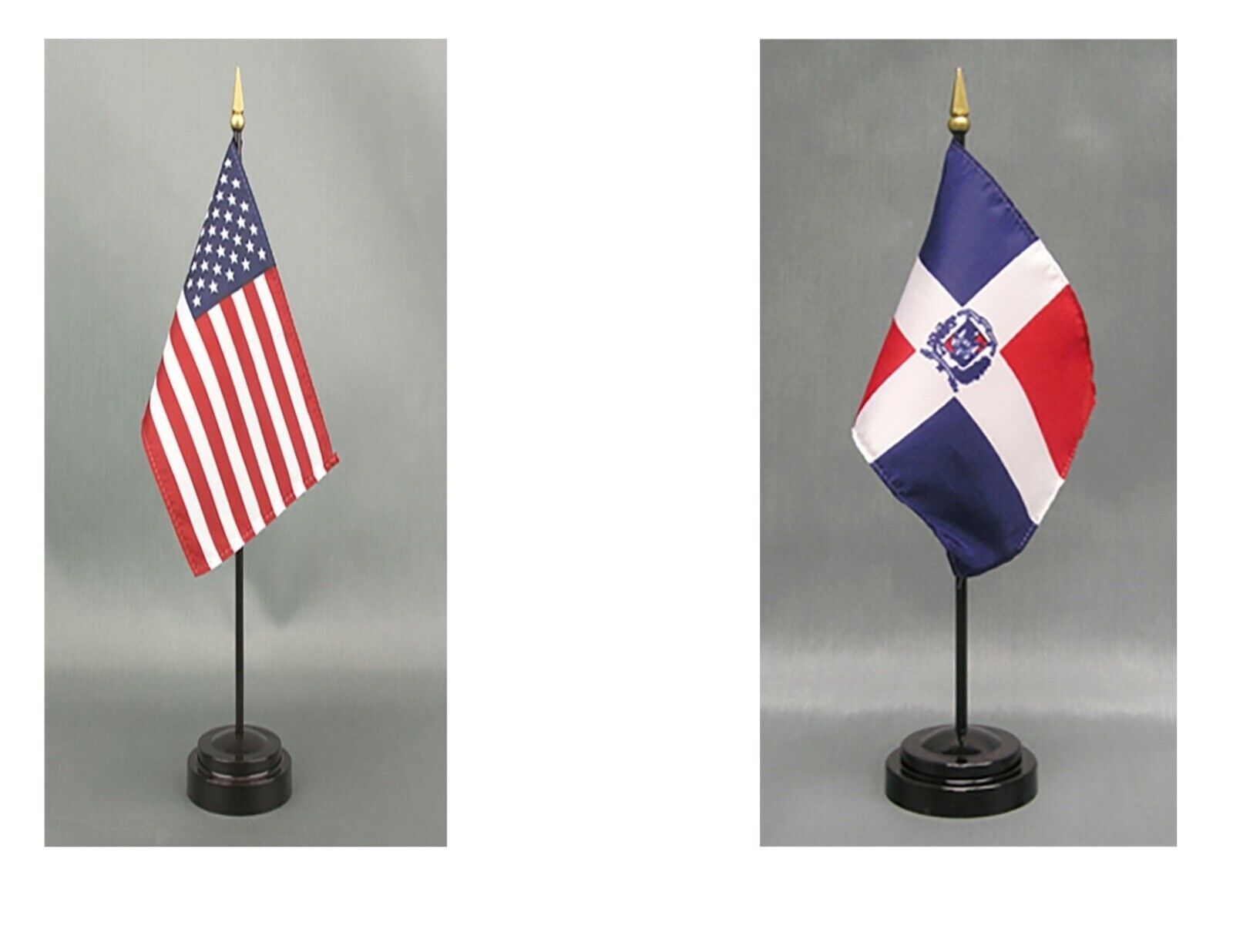 Made in ThenUSA-1 USA & 1 Dominican Republic Rayon 4"x6" Desk Flags & two bases