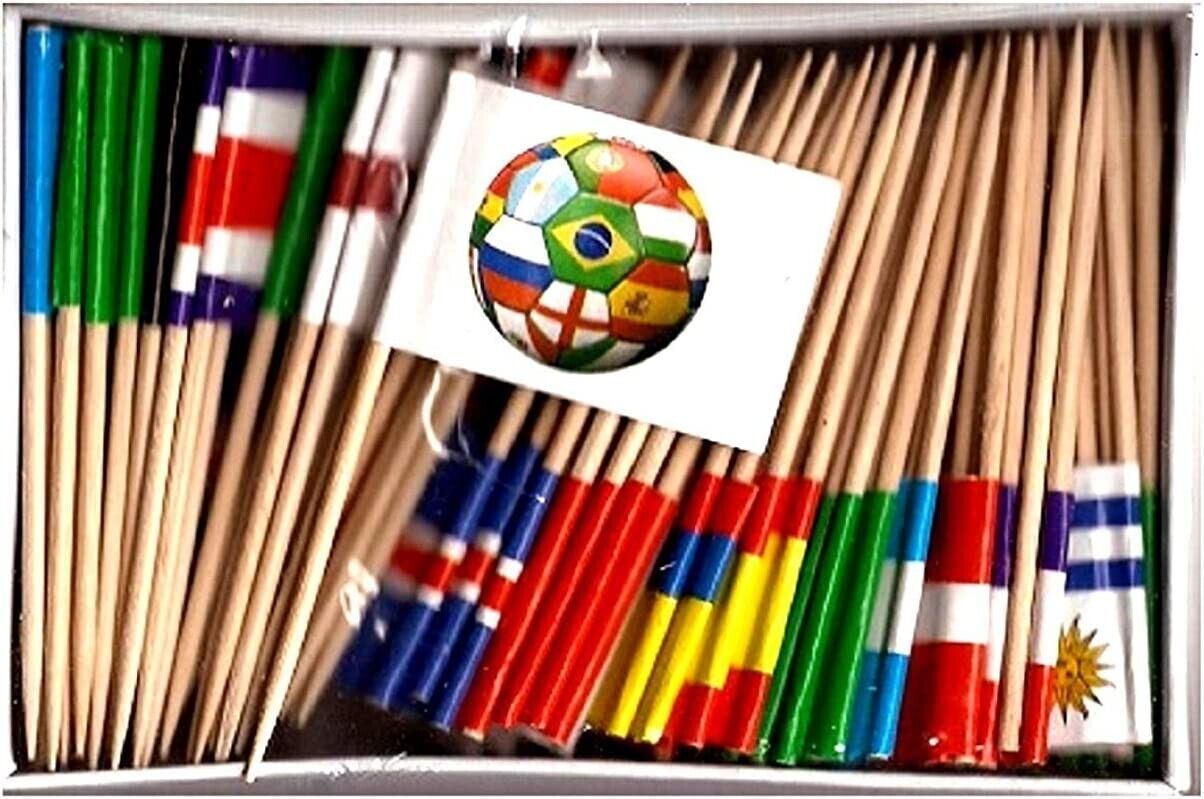 Argentinian, Australian, Belgian, Brazilian, Colombian, Costa Rican, Croatian, Dane, Egyptian, English, French, German, Icelandic, Iranian, Japanese, Mexican, Moroccan, Nigerian, Panamanian, Peruvian, Polish, Portuguese, Russian, Arabian, Senegalese, Serbian, Korean, Spanish, Swedish, Swiss,Tunisian and Uruguayan toothpick flags come with this set along with four soccer ball toothpick flags per box.