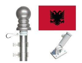 Albania 3'x5' Polyester Flag & Spinner Flagpole Set w/Adjustable Bracket