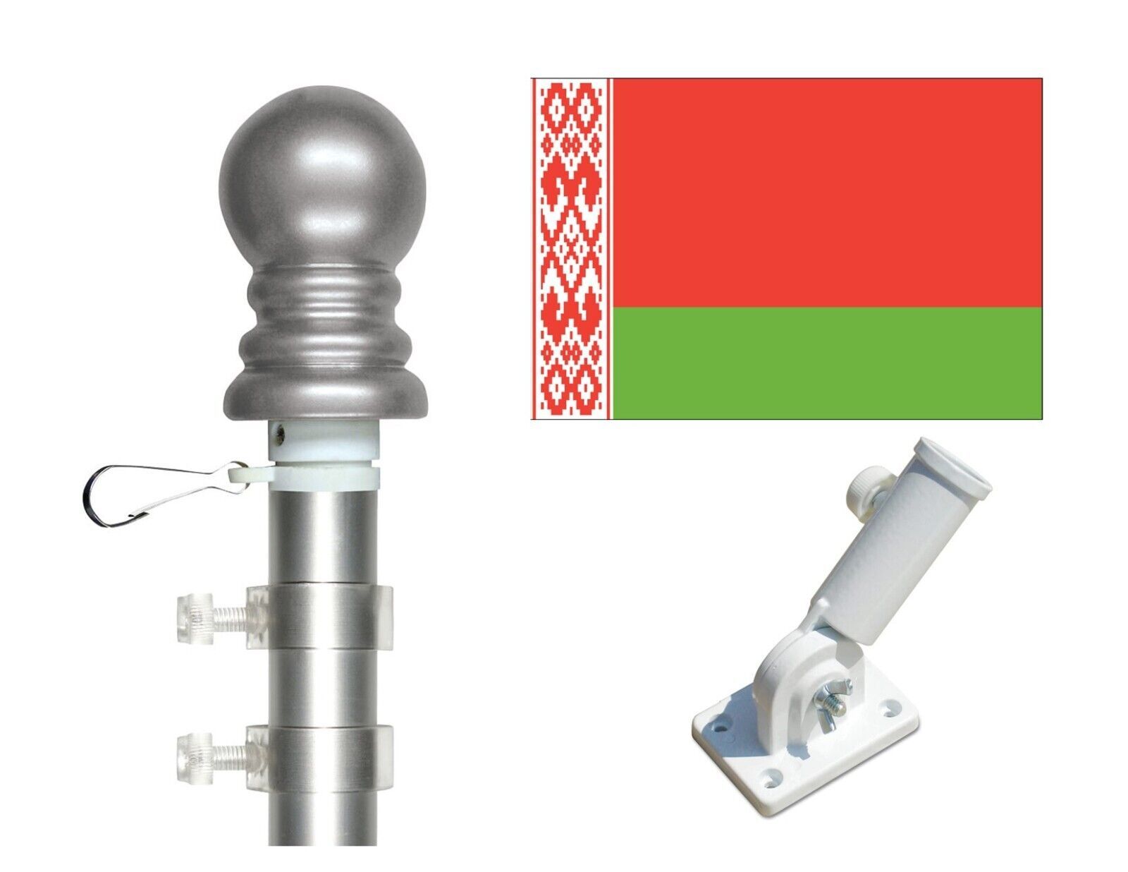 Belarus 3'x5' Polyester Flag & Spinner Flagpole Set w/Adjustable Bracket