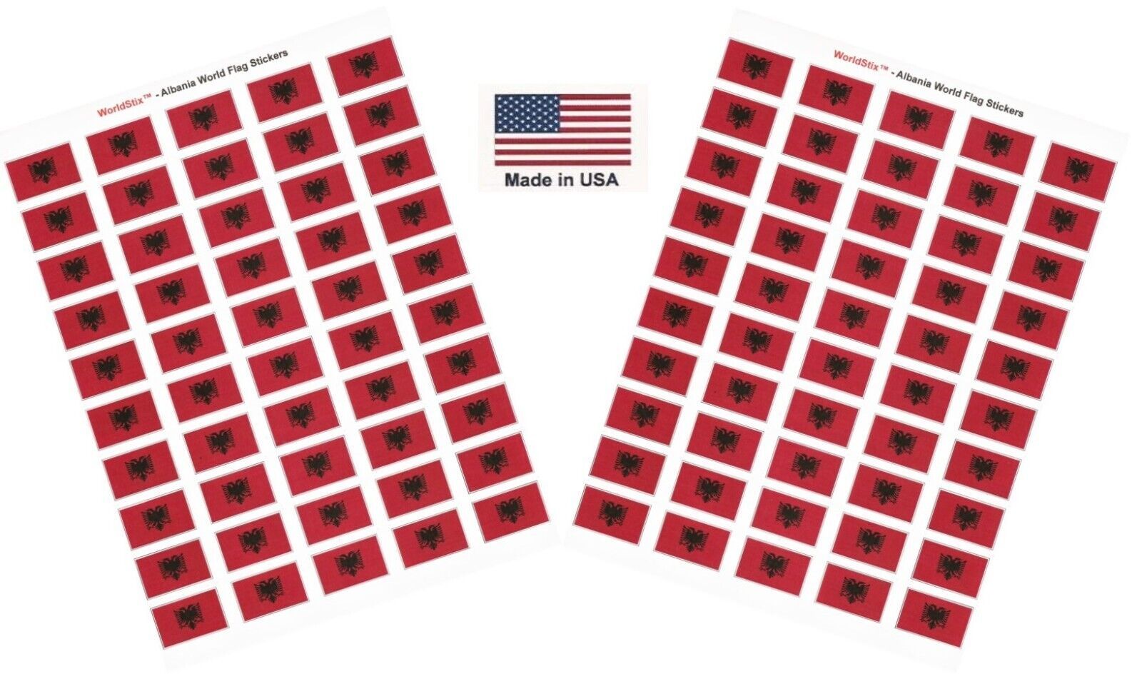 100 Albania Flag Stickers; 1.5" x 1" Self Adhesive Flag Scrapbook Stickers
