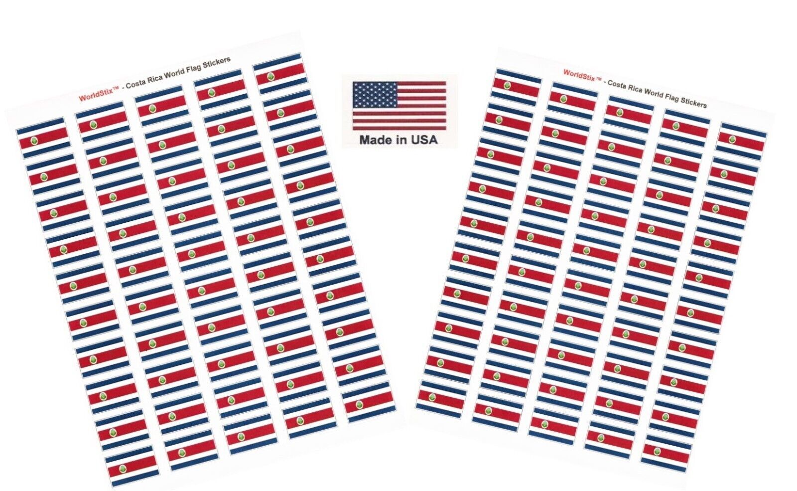 World flag stickers measure 1.5" x 1" and are printed 50 stickers per sheet. These stickers are sold on two sheets which totals 100 stickers per order.