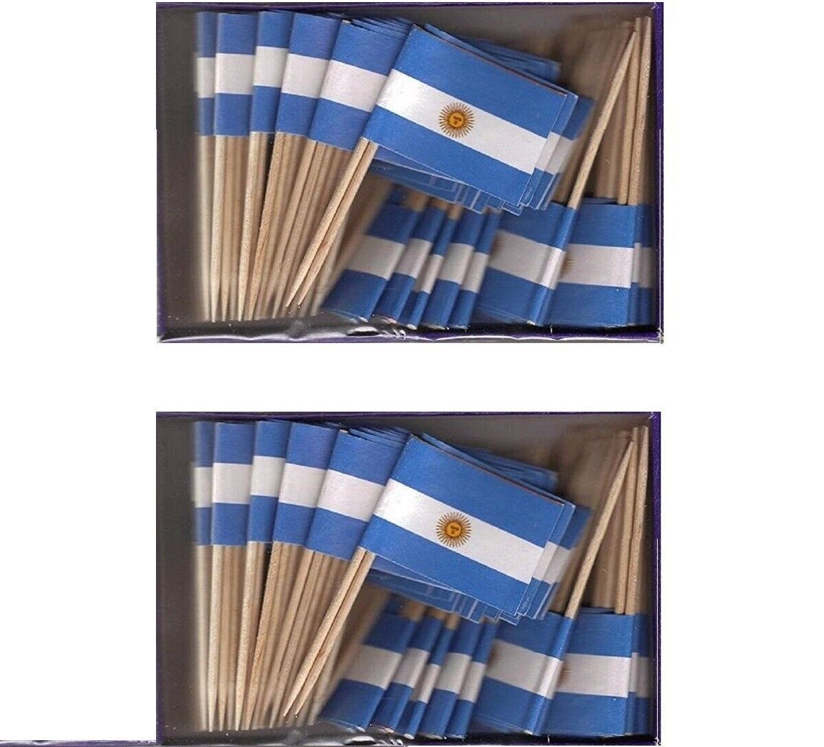 Two Boxes of 100 Argentina Toothpick Flags, 200 Small Mini Flag Cupcake Flags