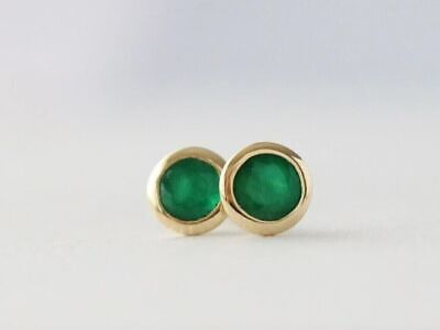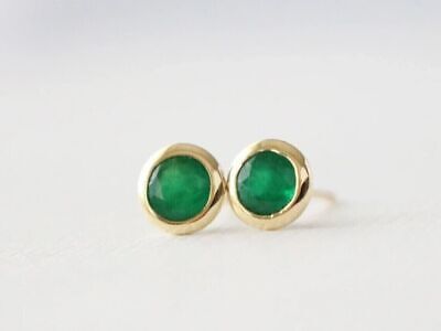 Boucles d'Oreilles Solitaire Émeraude Simulé Coupe Ronde 3Ct Plaqué Or...