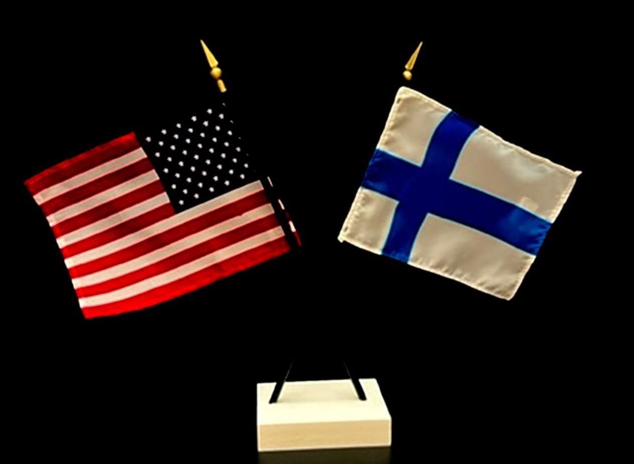 Made in USA. 1 American and 1 Finland Miniature Rayon 4"x6" Office Desk Flag. Li