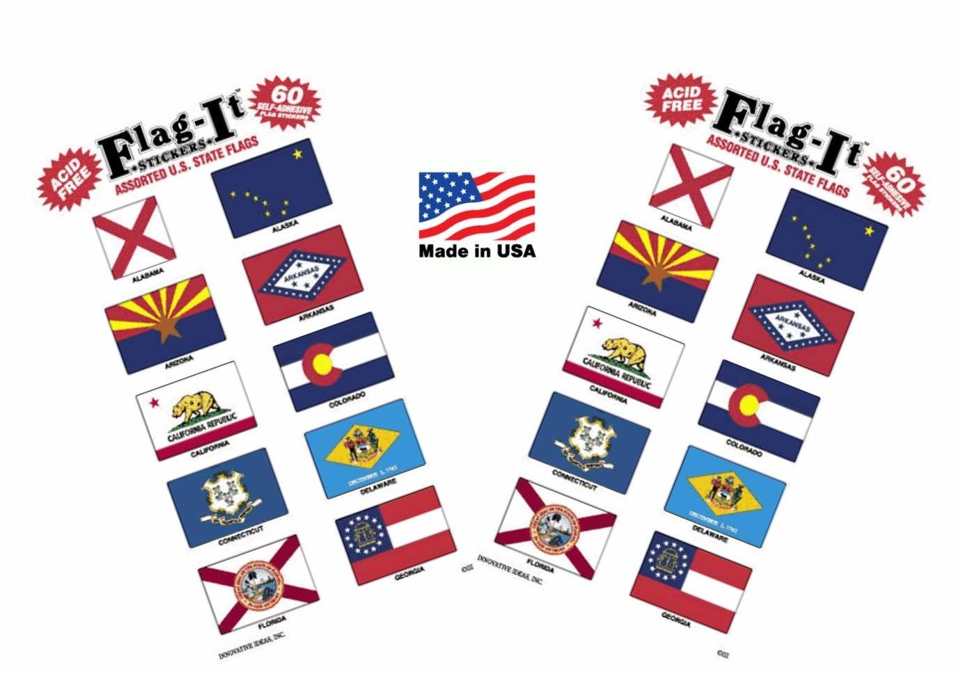 Made in The USA! 2 Packs of Flag-It Complete State Sticker Set, 120 Sticker Deca