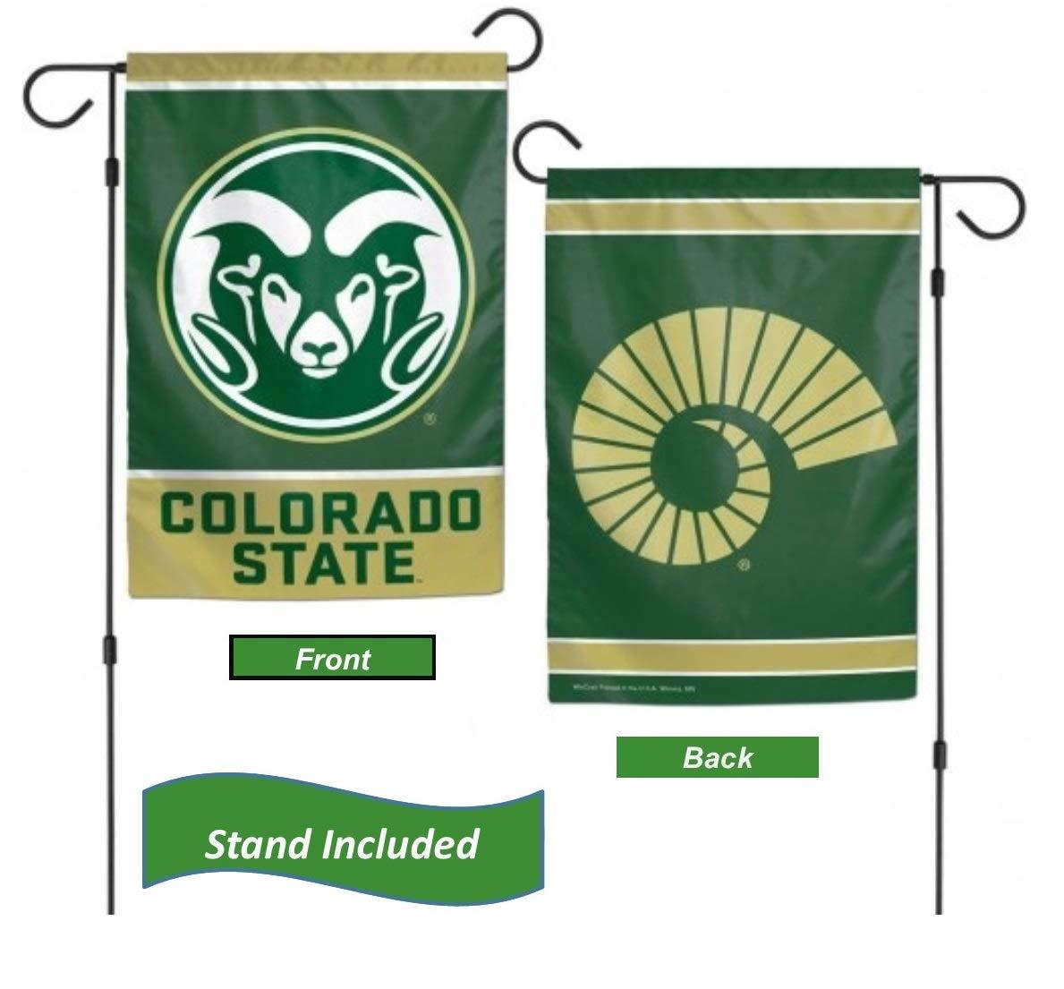 Colorado State Rams Garden Flag Set with Stand, Printed in The USA, 12.5" x 18"