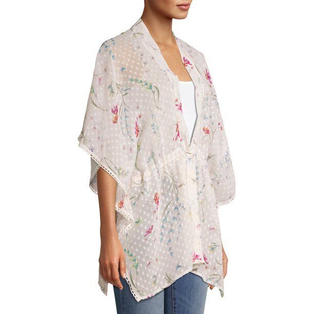 Time And Tru Women's Clip Dot Floral Print Kimono Multicolor Size XXL-XXXL